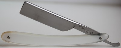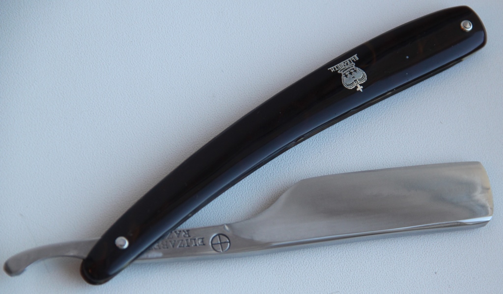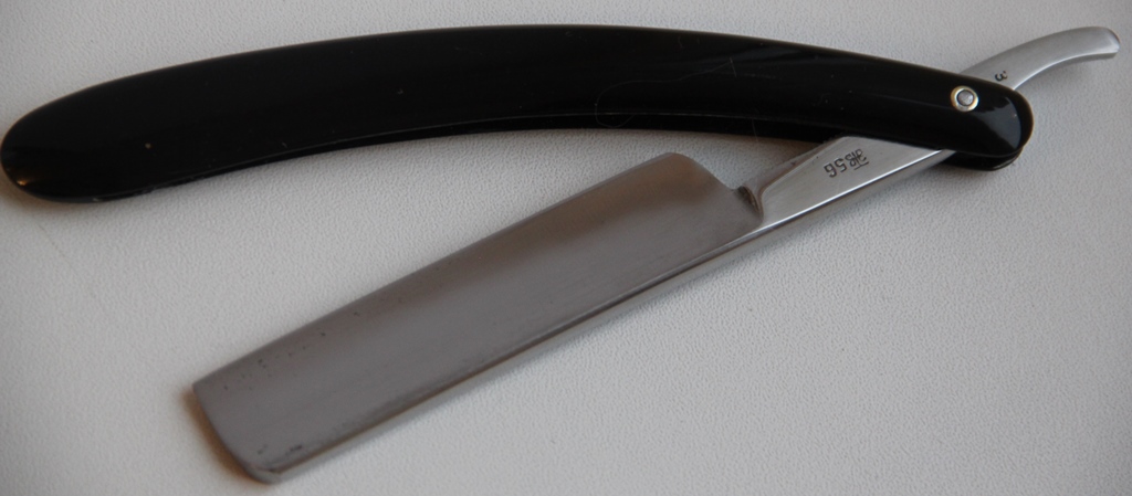 Этот шикарный, почти дюймовый экземпляр дошел до наших дней практически в идеальном состоянии, без следов пользования.(Обушок не имеет следов от заточных камней).Кроме косметической полировки вручную,чистки в районе осевого пина и замены пинов на нормальные, никаких работ больше не проводилось.Сталь и кромка чистые. Идеальная геометрия изготовления:кромочка равномерна по всей длине и еле заметна. Тяжелая. Бритьё напоминает испанскую Филармонику ранних лет:чистое, мягкое и комфортное. Такое ощущение, что не бреешься, а просто снимаешь пену с лица.Тем более, что за счет своего размера,бритва позволяет бриться практически под собственным весом. Сталь не такая твердая, как на современных Иссардах.Точится и доводится без особых проблем. Прекрасный экземпляр не только в коллекцию, но и для повседневного бритья.Имея такую бритву, можно особо больше не задумываться о рассмотрении и приобретении других вариантов, а просто получать удовольствие от француза..Бритва заточена, лично протестирована и полностью готова к пользованию.