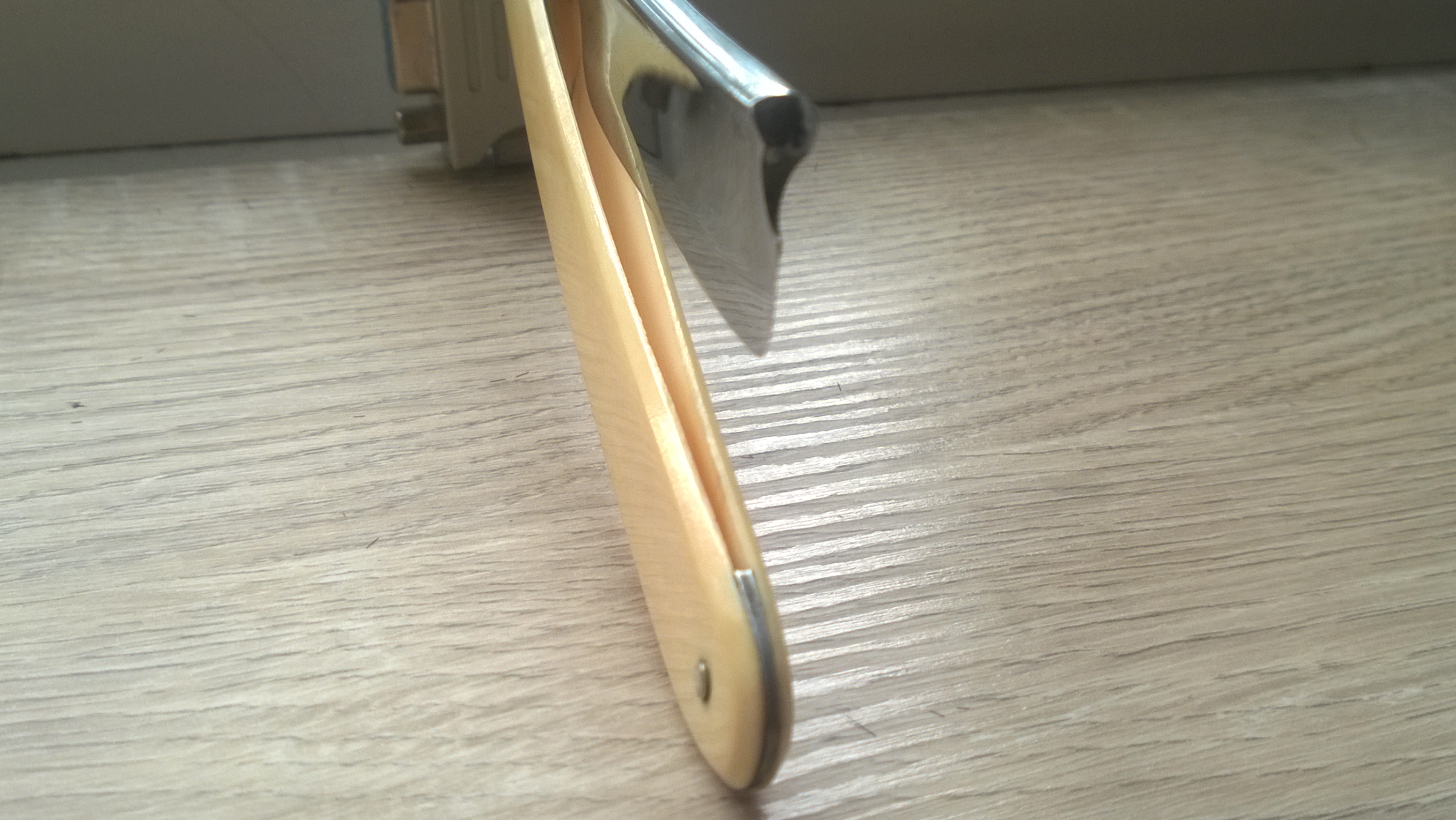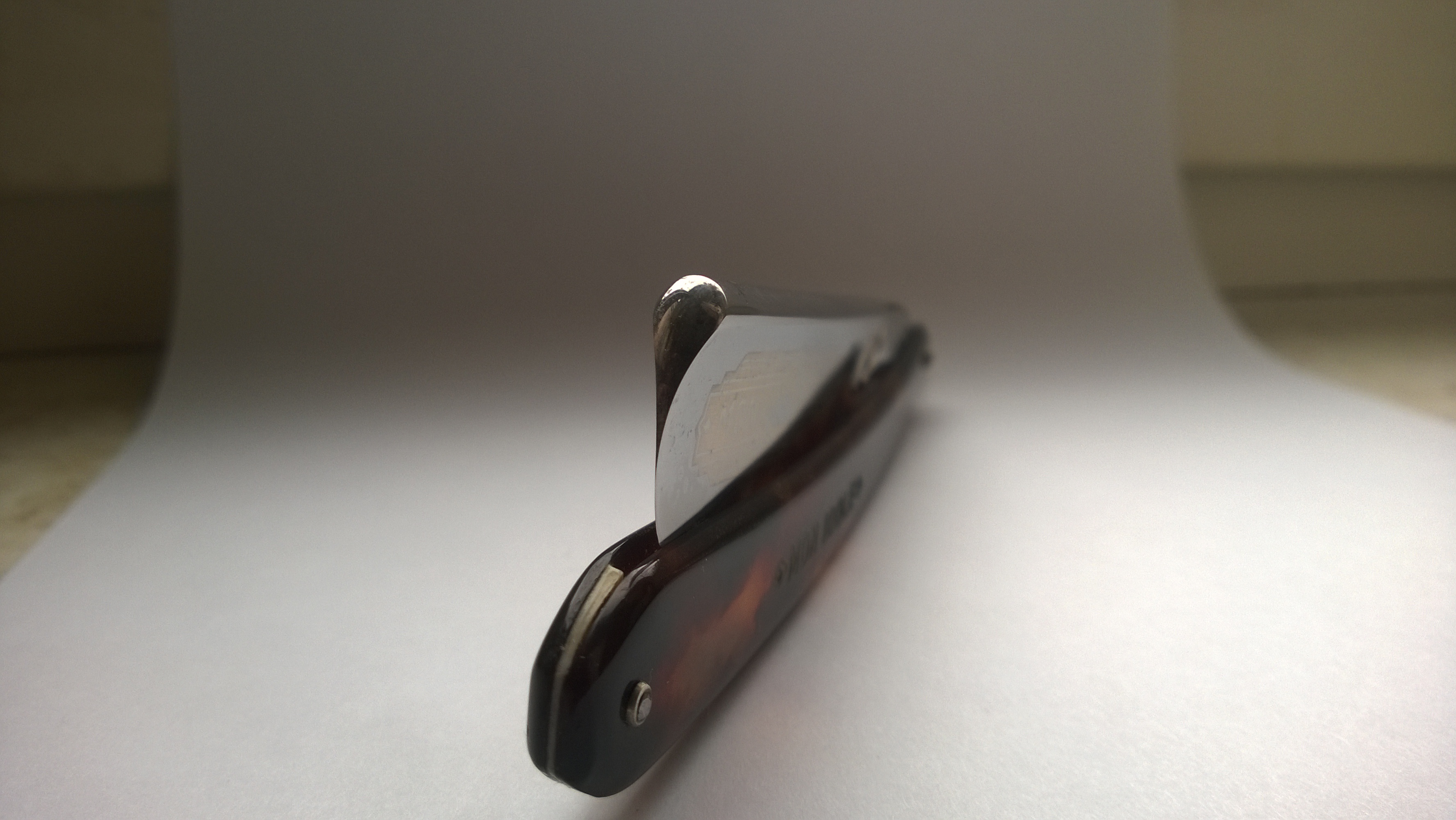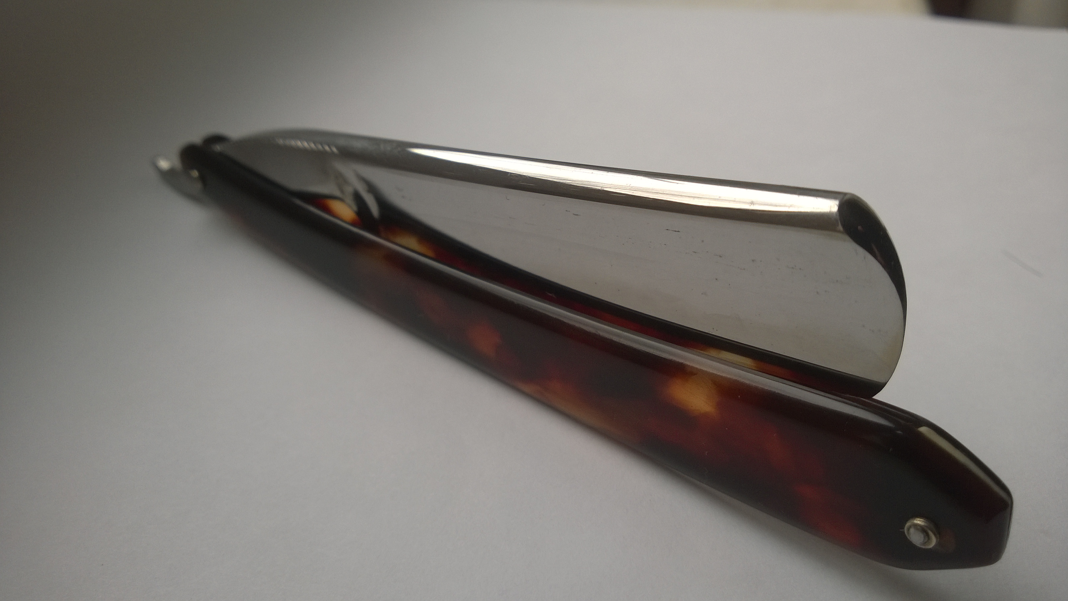 Отличный редчайший француз "Мой Кумир". В интернете за последние 5 лет видел еще один экземпляр в очень плачевном состоянии. Углеродистая сталь, ручка под черепаху (а может и сама черепаха, не с чем было сравнить). Отличная геометрия. Ширина полотна 19,5мм, длинна режущей кромки 70мм. Заточена и готова к улётному бритью.