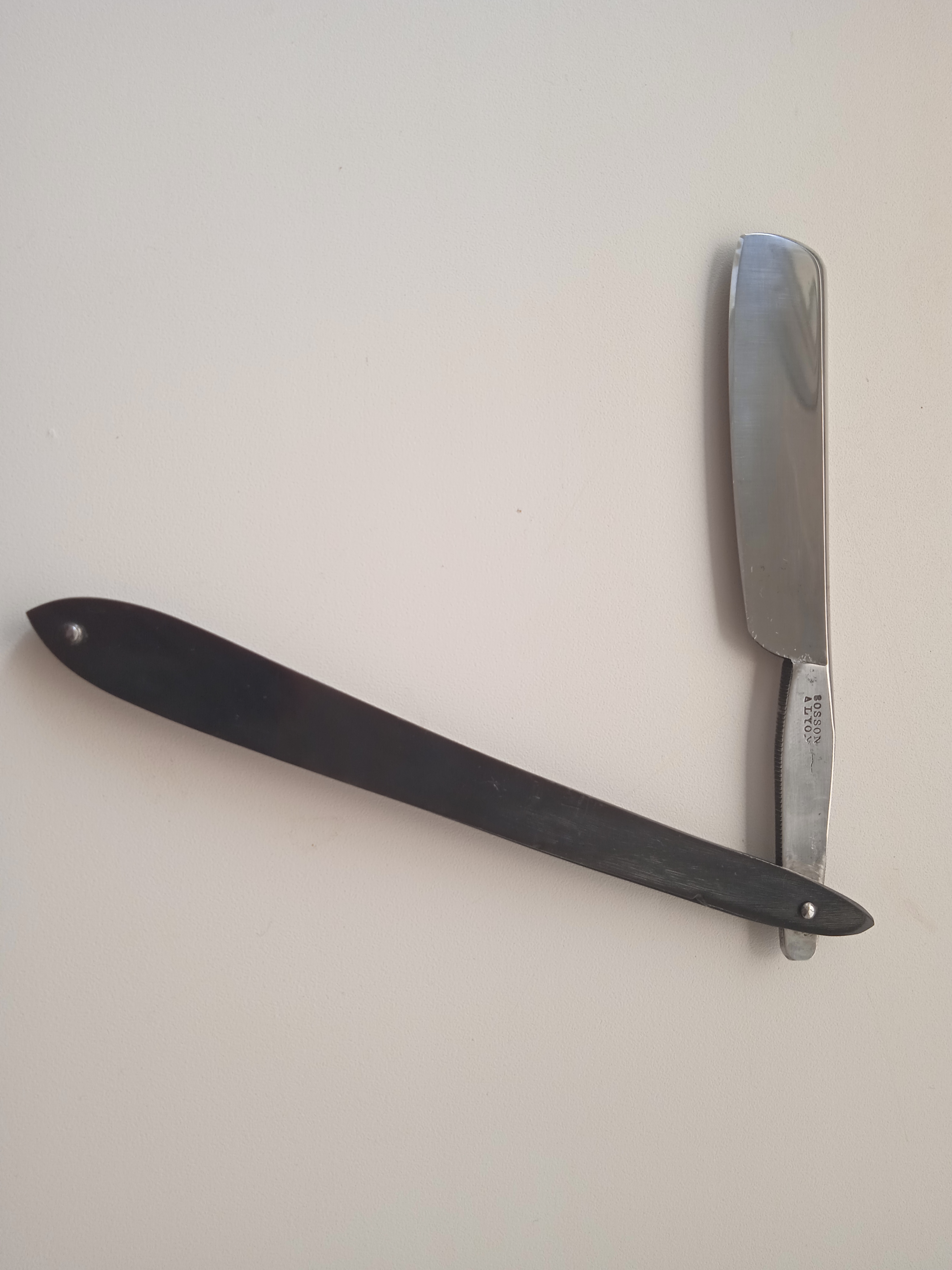 От себя добавлю, что бритва только что вернулась с заточки от Андрея (Wren), после заточки мной не использовалась, т.е. готова к использованию "as is". Цена 8 500 рублей (Стоимость доставки включена в стоимость инструмента) P.S. Продаю по причине собственной неуемной жадности. Только что приобрел два других не дешевых инструмента, чем сильно подорвал семейный бюджет. Призрак развода немым укором маячит на кухне, чемодан с моими вещами уже стоит в коридоре ПРОДАНО