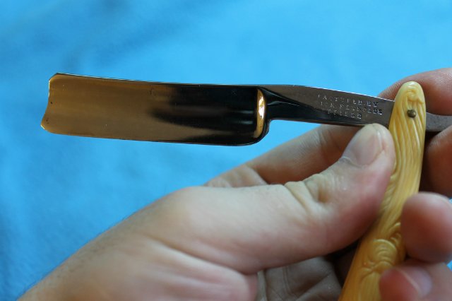 Год производства : 1924-1935. Параметры: ширина 14 мм, обух 4.2 мм Ручка : целлулоид. Состояние: после реставрации, заточена. Снято с продажи. Добавлено спустя 2 минуты 32 секунды: Продам "коротышку" Frederick Reynolds, ( Sheffield), ручка - целлулоид, произведена чистка и реставрация клинка, наточена (возможно ранее полотно было укорочено). Ширина полотна примерно - 18мм., обушок - 4мм., длина реж.кромки - 6,5см. Снято с продажи. Добавлено спустя 4 минуты 40 секунд: продам бритву "Экстра" ЗТВ , 58г. Заточена и готова к бритью. Продана Добавлено спустя 11 минут 19 секунд: Arthur Aringanum, старинный улыбчивый quarter ground. Ширина - 13/16, обушок - 5,0 Восстановлена и готова к боритью. Снято с продажи. Добавлено спустя 5 минут 44 секунды: Стиз Двухзаковная 1969 год. Продана