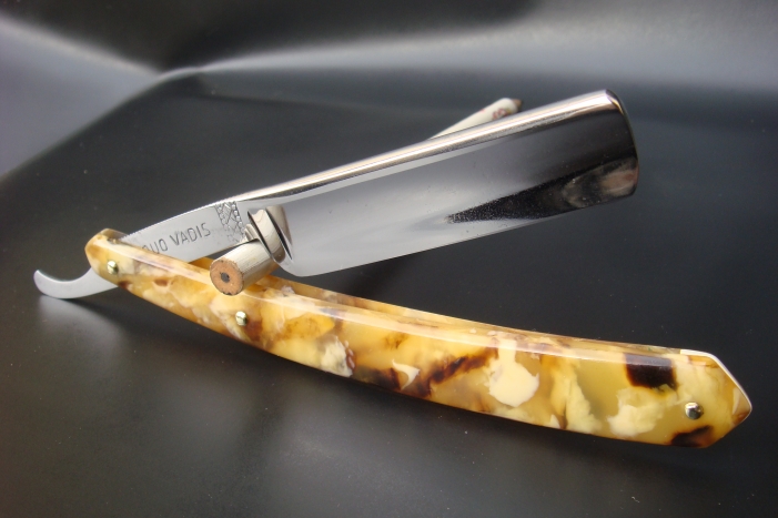 Лезвие приклеено к "спинке" клеем Poxipol. Заточена, готова к бритью.