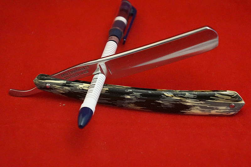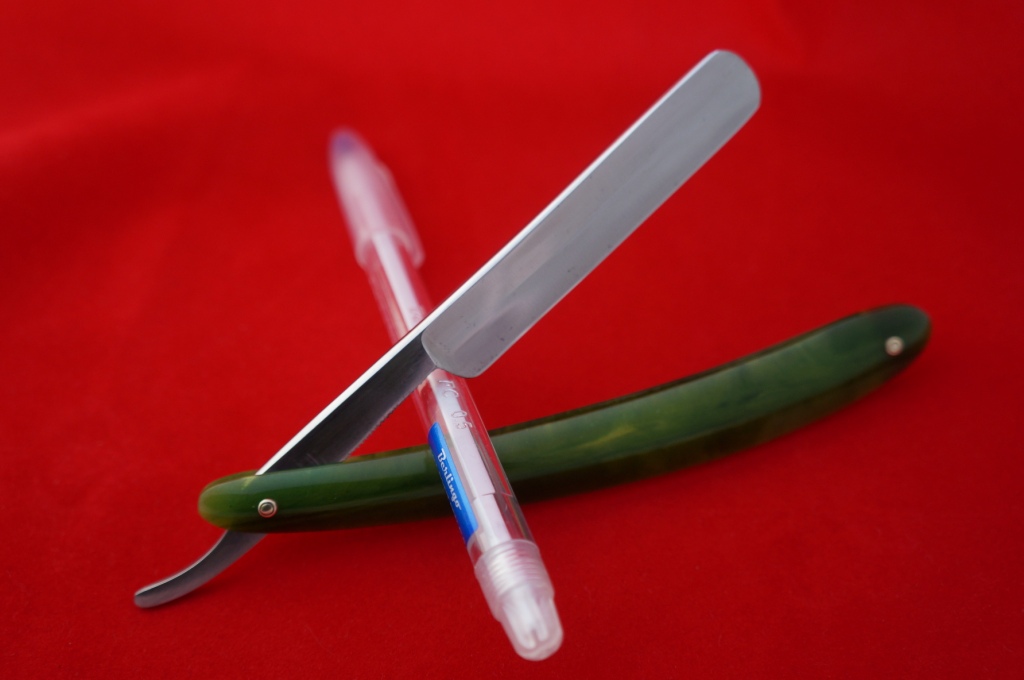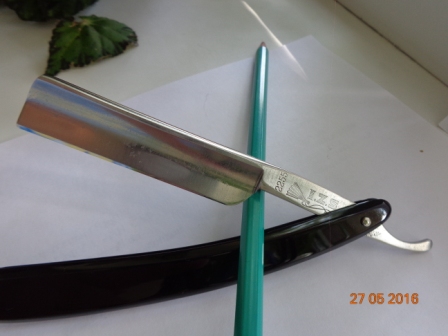 Продам: бритва H. Sefton, Sheffield, Англия, выборка лезвия Near Vedge ( почти клин ), углеродка, ширина лезвия в самом широком месте - 19 мм., ширина обушка - 5,5 мм., длина лезвия - 76 мм., ручка - родная, рог, слегка поведена в нижней четверти ( заметно при пристальном внимании, на закрытие-открытие не влияет), пины, шайбы новые - латунь. Возраст - ориентировочно конец 19 - начало 20 в.в. Заточена, готова к работе. Продезинфицирована. Бреет очень мягко, как и большинство клинов. Цена:
