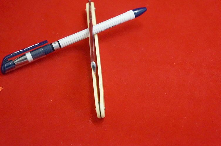 Ручка, клинышек - пластик, пины - латунь.