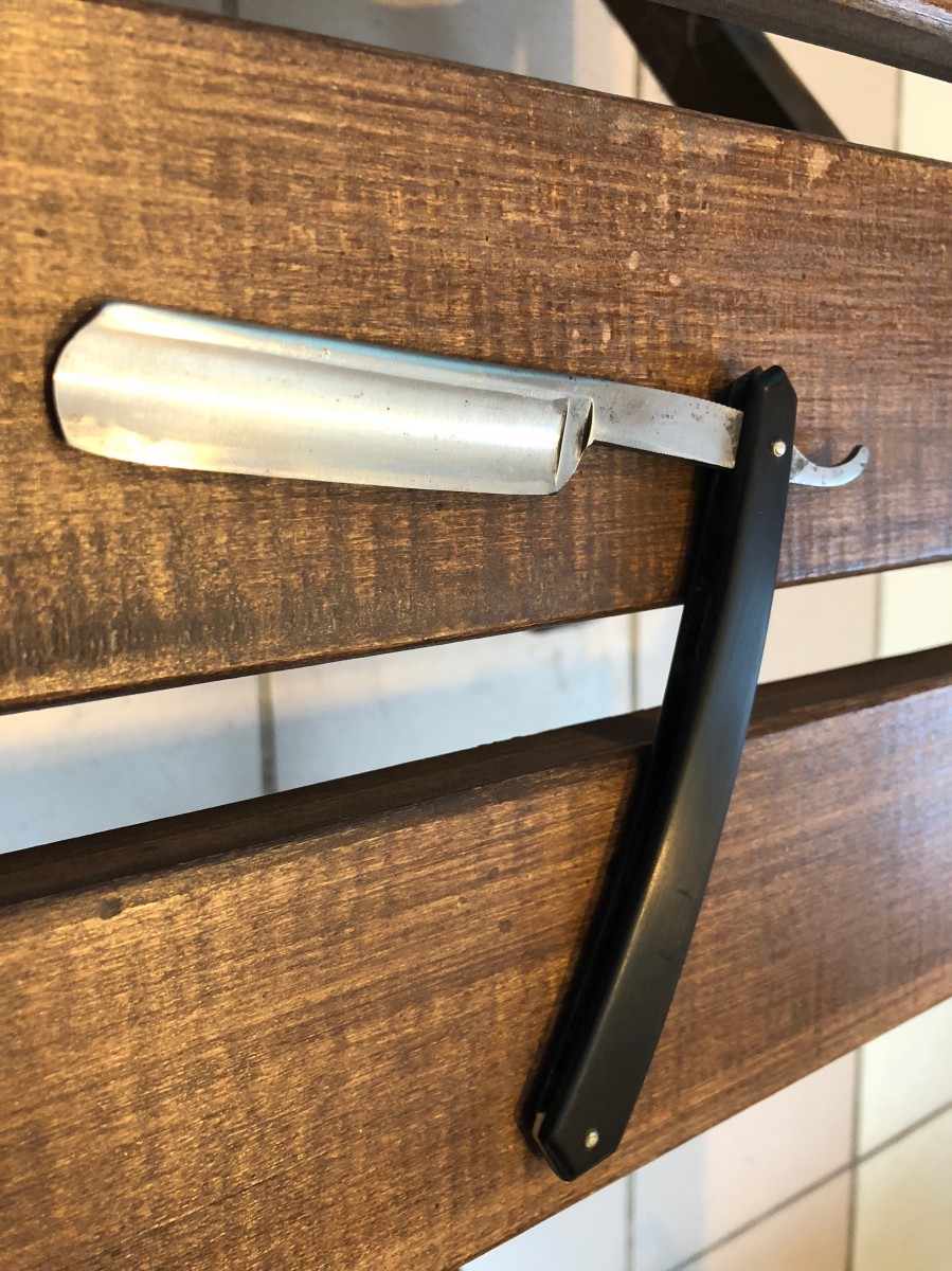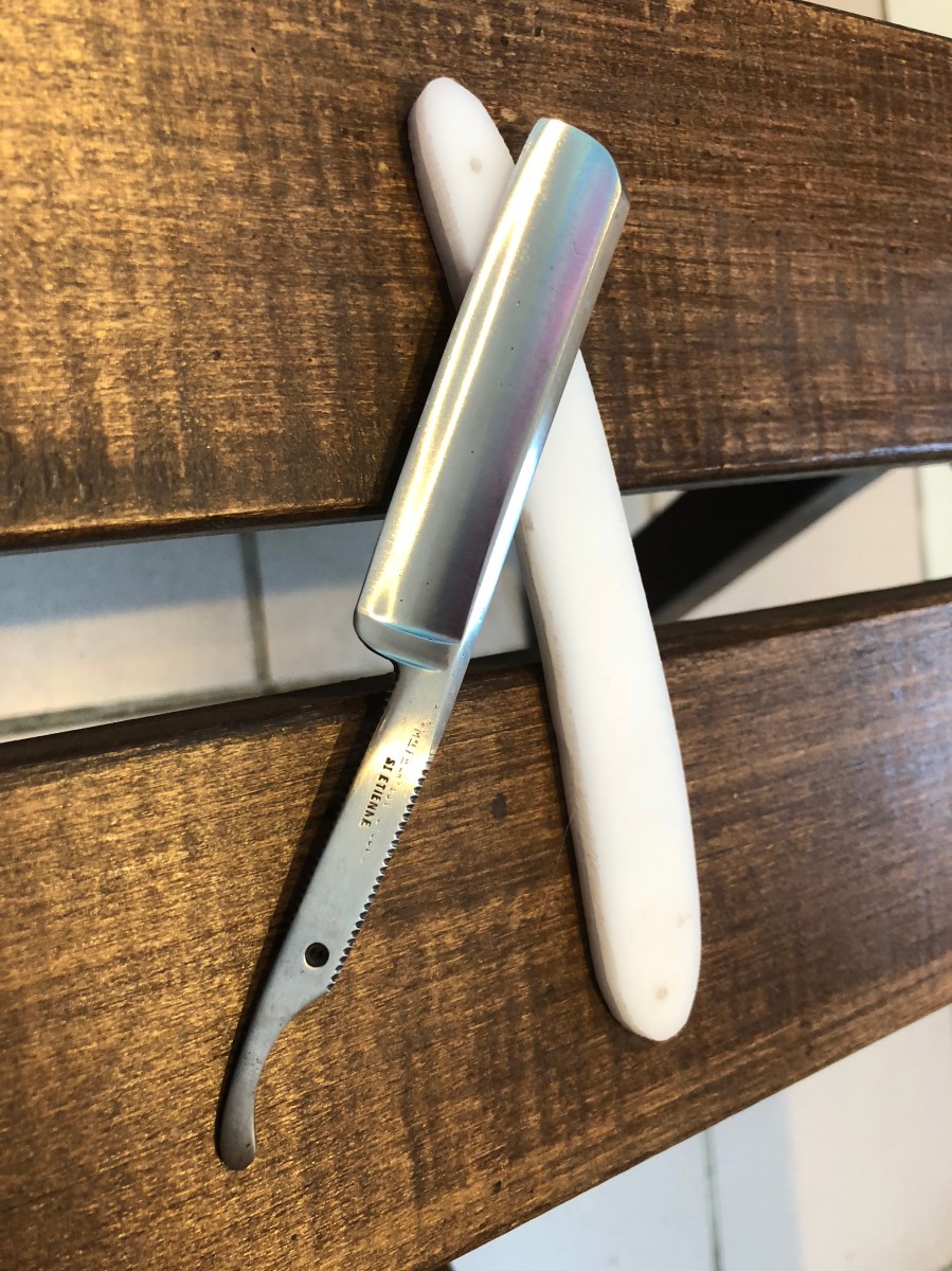ИЛИ частично восстановленную мной бритву (черная ручка). Требует заточки.