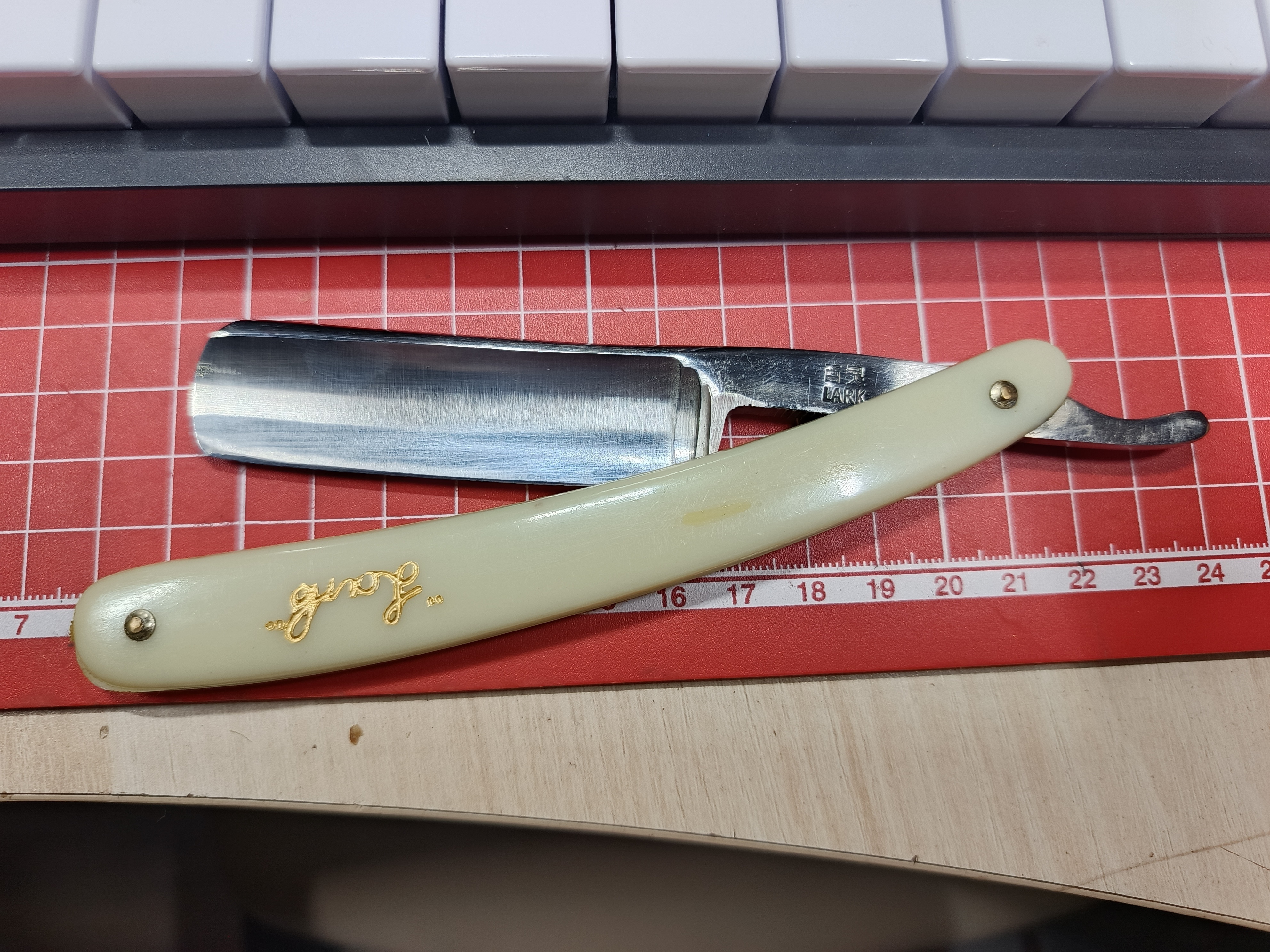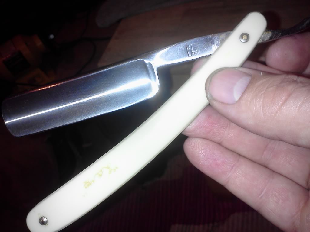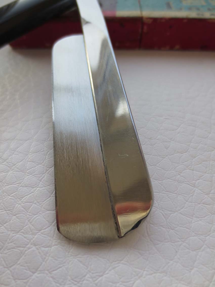 Сначала поискал инфу - почти нигде нет - только несколько фото и указание что бритвы выпускались в Китае в 50 е годы .. Показалось интересным сравнить с современным китайпромом Что сказать - по качеству исполнения всяким GD с Титанами - до Lark а ещё расти и расти Бритва штампованная - видно по ступеньке у основания лезвия и потом аккуратно дошлифована . Геометрия очень хорошая , заточилась на ять - Бреет как Егор и сказал похоже на породистого немца - с легким похрустыванием , после бритья уверенно режет волос как и до.. В общем достойная очень бритва - очень жаль что китайцы настолько опустили производство