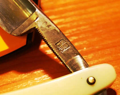 Заточка прошла быстро и легко , современные дово и рядом не стояли . Побрился в два прохода (недельная щетина ) как обычной бритвой ,после волосок срубила уверенно . Вообще если убрать иероглифы на эрле и оставить чисто надпись LARK , был бы обеими руками за , что это немец . Так что , как будет свободное время возьмусь за восстановление . З Холодного Яру.