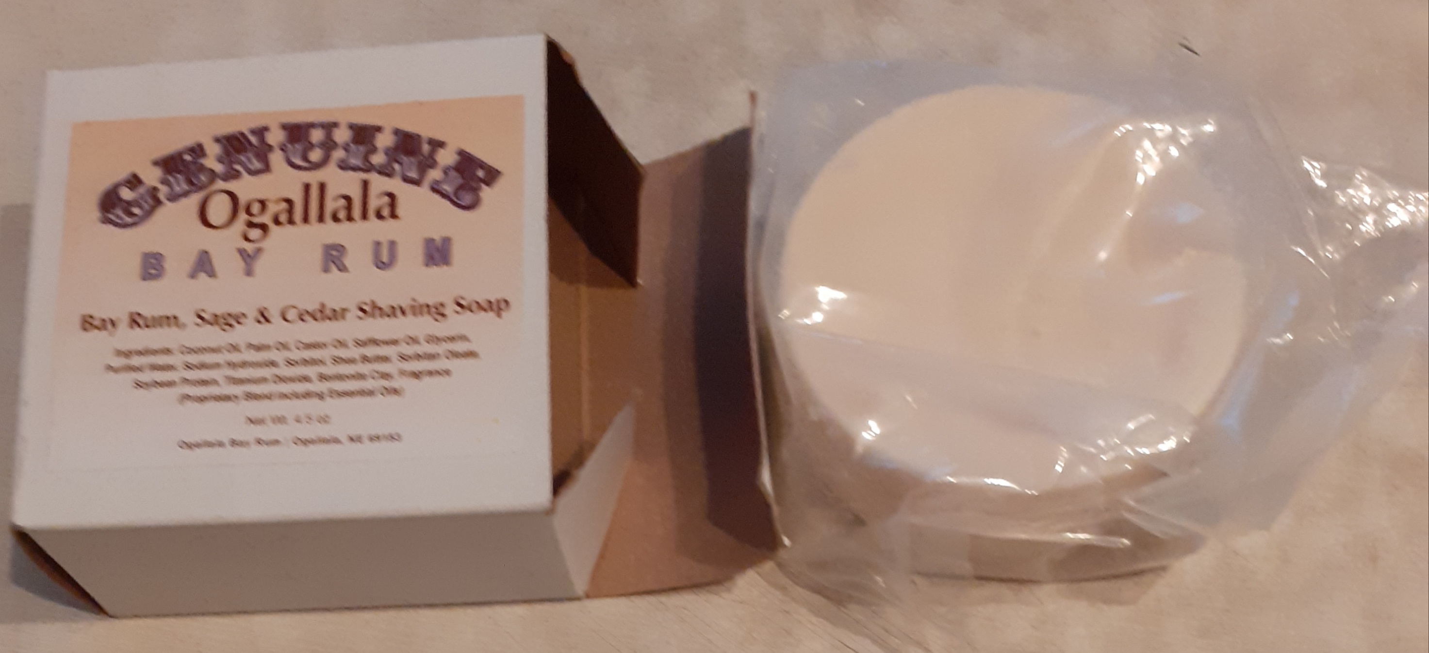 "Ogallala Bay Rum, Sage & Cedar" осталось. Мыло совсем неплохое, особенно мне понравился его настоящий Bay Rum аромат! Пена хорошо взбивается и очень стойкая. То что мне не так понравилось в мыле, это липкая консистенция после использования мыла и в связи с этим мыло быстрее кончается. Но этот по моему единственный недостаток, никак не отражается на качестве мыла, хоть оно совсем недорогое (всего 6$)