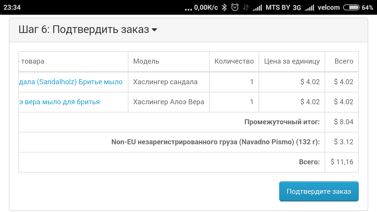 В принципе дорого для Россиии, у нас правда еще дороже будет Попробуйте зарубежные сайты, цены их приятно удивляют Если правильно считаю, получается 700 рублей российских за 2 кусочка мыла.