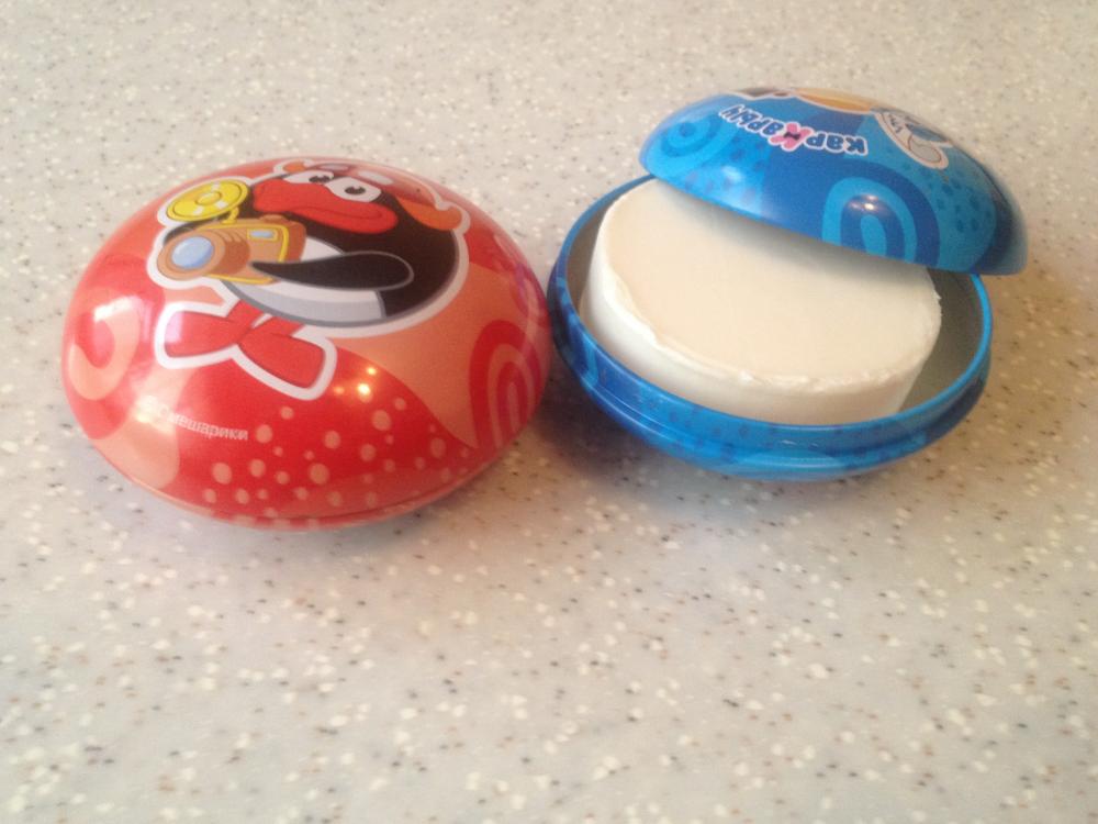 Re: Мыло и крем - у кого сколько и какие?Столкнулся я с небольшой задачкой: мыло Хаслингер упаковывается просто в целофан с бумажной биркой, т.е. производитель о дальнейшем хранении не позаботился. В прошлые выходные на даче в детских игрушках обнаружил жестяные коробочки от леденцов серии "Смешарики", и о чудо - шайбы Хаслингера идеально вошли в эти жестянки. Еще и персонажи попались самые любимые - Пин и Карыч