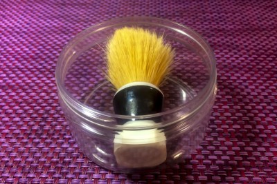 Выбор пал на него из-за малых габаритов. Я им для бритья не пользовался, а валялся он у меня в качестве щетки для очистки от пыли печатных плат. Но вот отмыл его и полетел он со мной во Вьетнам. И какого же было мое удивление, что помазок показал себя с лучшей стороны, мягкий, пену бьет отлично, единственно - немного коротковат, но в дороге это плюс. Так что еще послужит он мне по прямому предназначению. Кстати в качестве скатла использовал банку из под какой-то мазилы, которую отобрал у жены. Тоже оказалась удобная, края загнуты, что не дает пене выпадать из нее. Вот думаю еще в дне банки выдавить пупырки методом нагрева и вообще будет классно