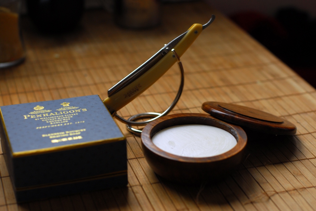 Последнее время я пользовался исключительно мылом Williams. По своей цене ( на ебэй), на мой взгляд выбор это хороший, тем более что с использованием обычного мыла возникали всякие неприятные штуки. Однако, всегда хочется чего-то нового, и вот решил я разориться и купить себе что нибудь поинтересней. "Truffit & Hill" продается в Москве, Proraso пробовали многие, посему наткнувшись на аукционе на Penhaligon's "Blenhiem Bouqet" в деревянной мыльнице, приобрел его себе.