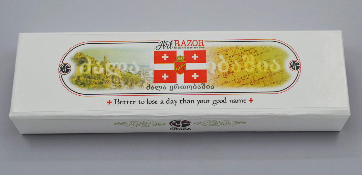 Вот еще пример: Бритва пилигрим задумывалась безо всяких гравюр на полотне. Гравер прочитал чертеж неправильно и ляпнул название бритвы на самом полотне вместо на ручке Вот так и рождаются монеты с перевернутым гербом.