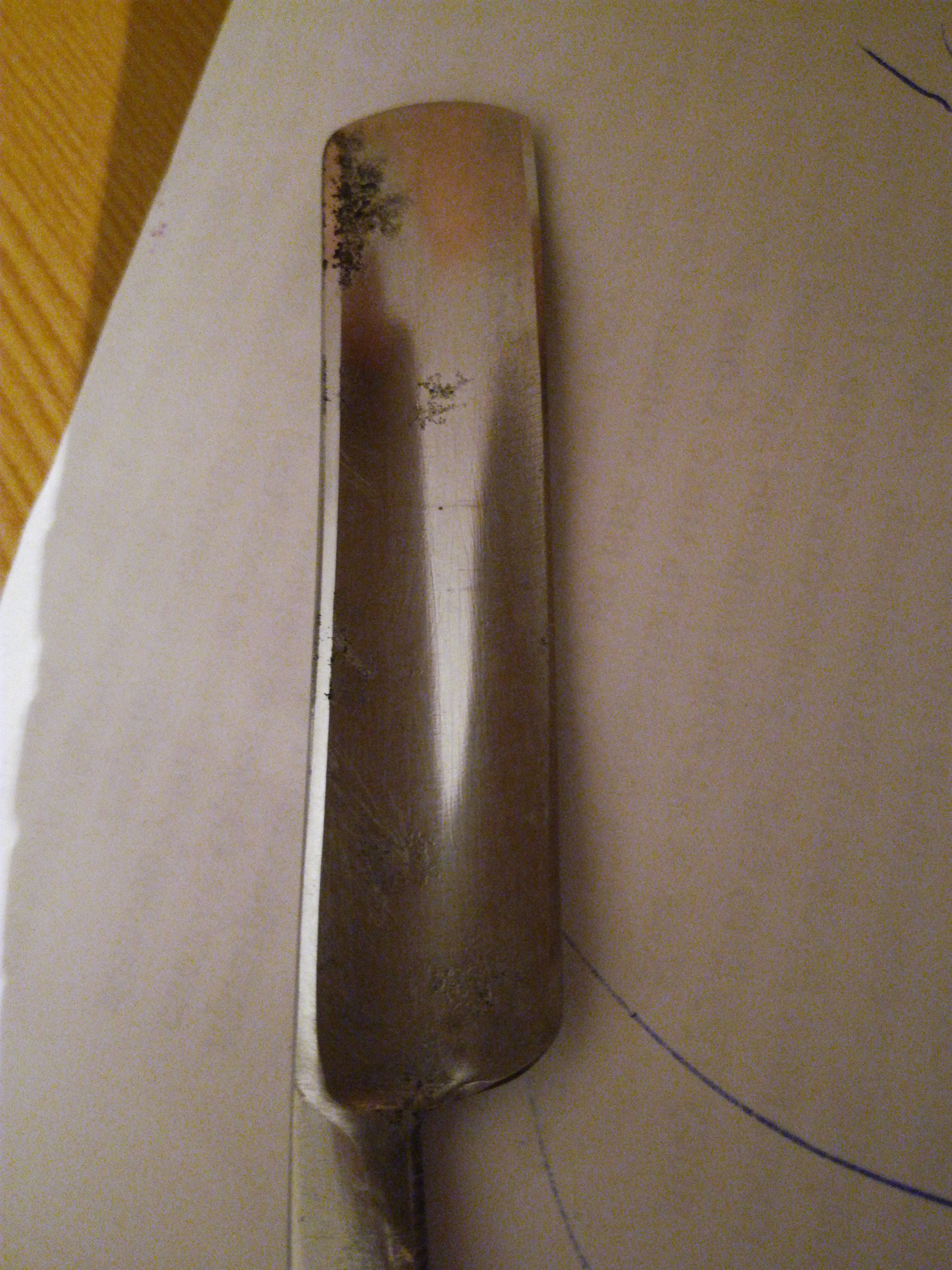 Текущее время: 18.11.25, 5:54 Исправление геометрии бритвыМодераторы: Олег Бритва, Модераторы Исправление геометрии бритвыДоброго дня форумчане. Досталась вот такая бритва. Чуть убрал ржавчину, каверны остались. Но судя по сточенному обуху и спускам ее коряво точили. Бритва нужна для тренировки заточки/доводки перед покупкой достойной бритвы. Как будет грамотно выровнять на ней улыбку, чтобы получить ровную кромку? Если точить кромку на наждачке, то как не пролететь с равномерностью относительно обуха? Можно ли как-то исправить сточенный обух (или как правильно назвать его боковую грань), чтобы при дальнейшей заточке РК была равномерной, а не повторяла этот сточенный обух? Пытался объяснить как мог. Не судите строго )))