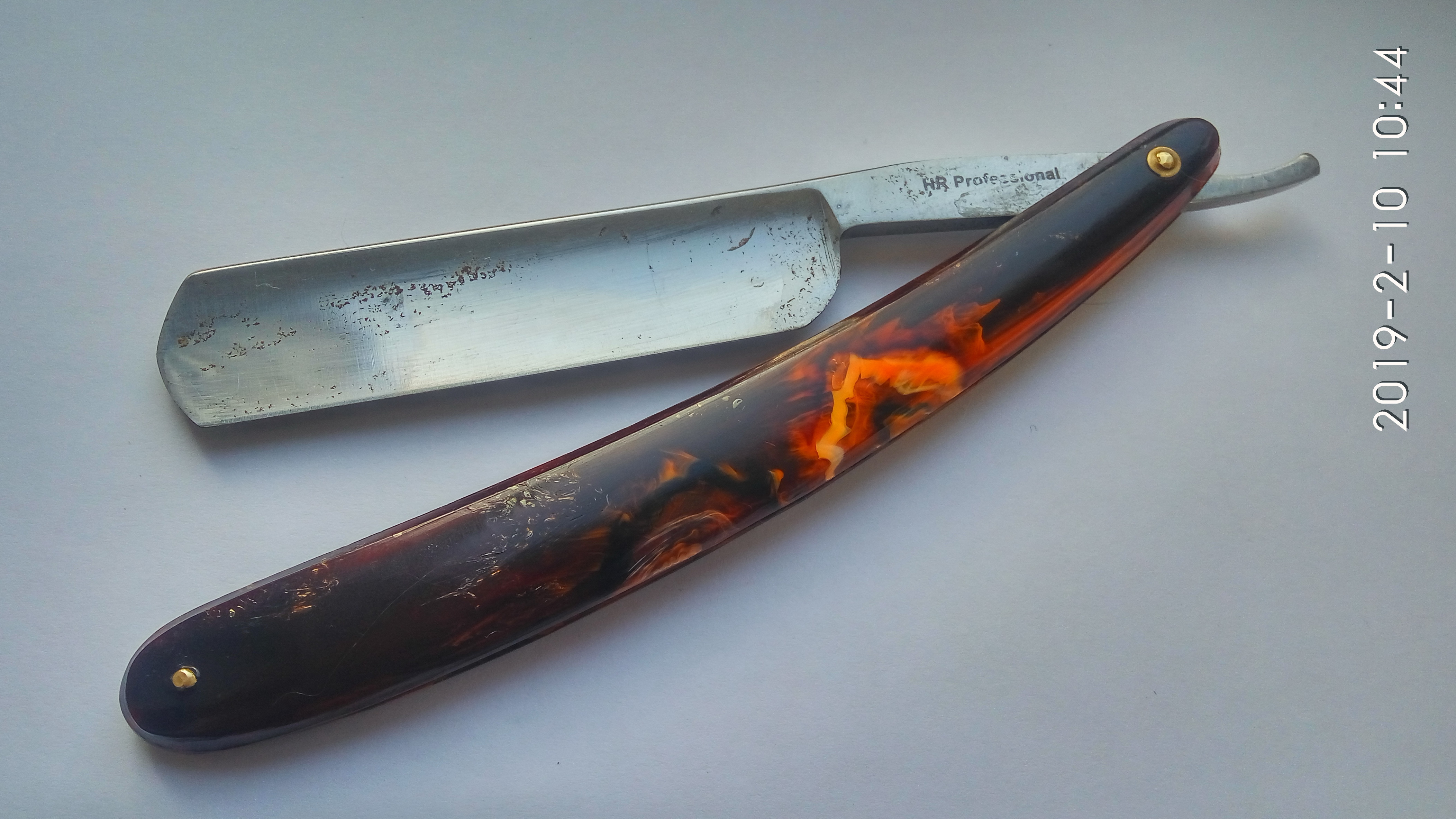 HR ProfessionalОдин знакомый парикмахер подогнал во такую бритву, что это - не знаю, но ручка зачётная. Буду разбирать и скорее всего она пойдёт на француза. Если кому то надо полотно для тренировки по повышению своего уровня в заточке, пишите, отправлю (ширина полотна 20 мм)