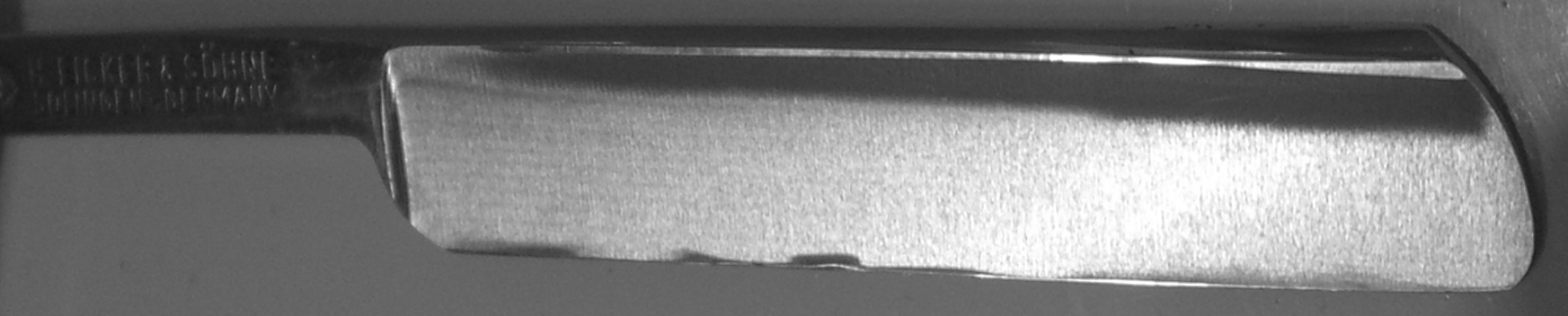 Re: Небольшая коцка на остриеЕсть бритва, из современных, непользованная, но в процессе "хранения" утратившая рабочие свойства... В общем в нескольких местах кромка загнута. Насколько я понимаю, тут ничего не поделаешь, кроме как точить до неиспорченного участка (а это приблизительно 1 мм ширины). Я прав?