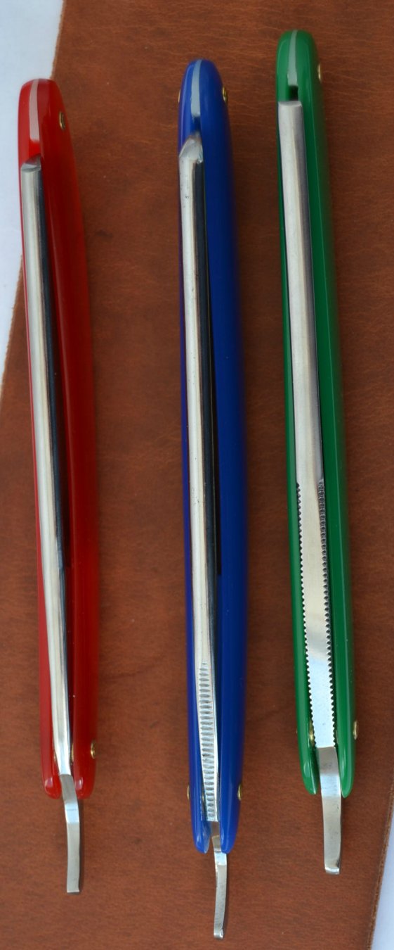 Цвета яркие, нетрадиционные, но то желание заказчика.. Были еще пластины цвета кости, но все заготовки я испортил во время обучения. А вот с этими вроде все получилось. Spoiler Show Re: Ручка - ремонт, замена, изготовлениеОтличные цвета и свежее решение. И как следствие-бодрый вид бритовок. Молодца!