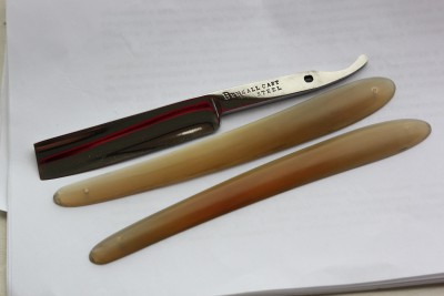 Re: Ручка - ремонт, замена, изготовлениеОтремонтировал бритву. Ручка из рога, насколько я понимаю. Она с самого начала была изогнута. Прогрел на водяной бане и зажал в пресс на три недели. Плашки выпрямились, собрал бритву. Прошел месяц - ручка изогнулась едва ли не сильнее, чем раньше. Бритва не просто не закрывается - в крайней точке отклонение рукояти 3.5мм, толще плашки.