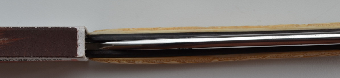 Re: Ручка - ремонт, замена, изготовлениеи где ты такое на ножах видел ? Да же дремучие китайцы вырезают титан и в него карбон вставляют , то есть толщина не меняется . Просто человек делал на отъ...бись , поленился с выборкой мучатся , подганать, как вариант - мог просто взять две ручки , на деревянной плоскость прошлифовать , на верх резную , костяную приклеить - тогда он точно не по ножам , а по бритвам спец , только ленивый .