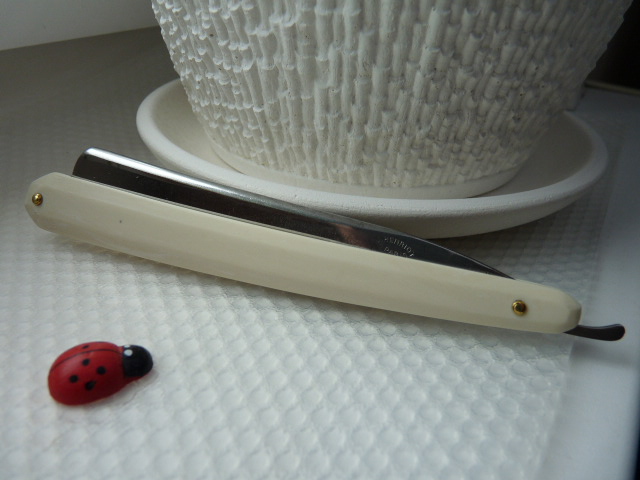 Re: Ручка (оправа) бритвы - изготовление/ремонтВот ещё примерчик использования/сочетания современных материалов ручки, правда для старого француза. Но это Элфорин - современный заменитель/имитатор слоновой кости, сейчас идет на бильярдные шары и накладки клавиш для фоно.