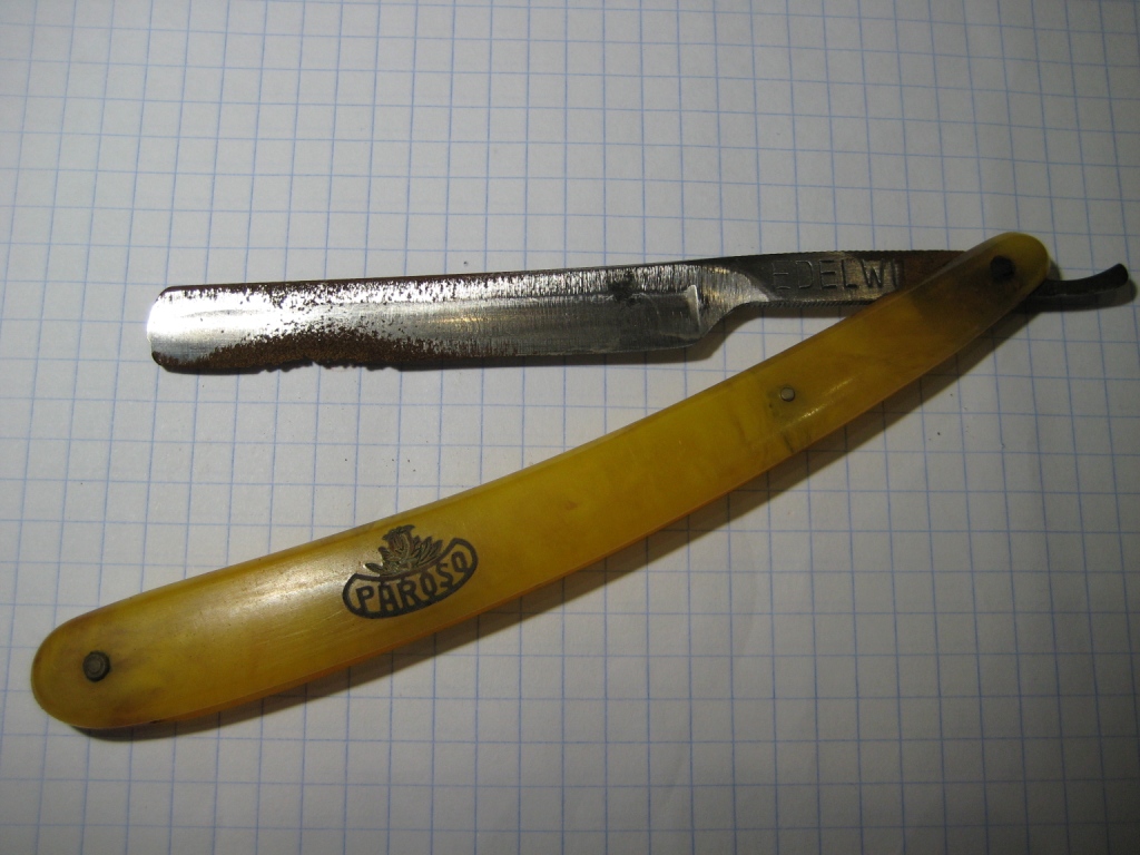 RuslanK извини, что влезаю с комментарием...у меня такие бритвы и этого производителя (и с такой ручкой) есть и с ними всё в порядке. Они ещё бывают с зелёным и серым "перламутром"...думаю это не целлулойд на ручках. а "больные" бритвы да, были: одна ERN с ручкой под черепаху, две другие Heljestrand 4 и 24 (хотя на них ручки были черные), но симптомы "заболевания" были те же: от ржи не спасало ни масло, ни чистка с полировкой...Избавился от всех нафиг.
