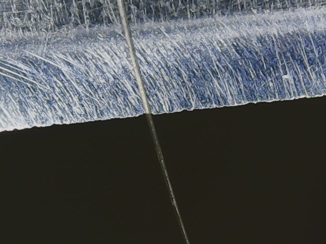 Во время заточки заметил, что 2,5 см от пятки - кромка крошится. Остальная часть лезвия заточилась до уверенного реза волоса. Бритва побрила пол щеки и затупилась. Правка на чистом ремне не помогла - что меня озадачило. Добрился другой бритвой, а эту попробовал править на чистом ремне еще раз - результат нулевой.