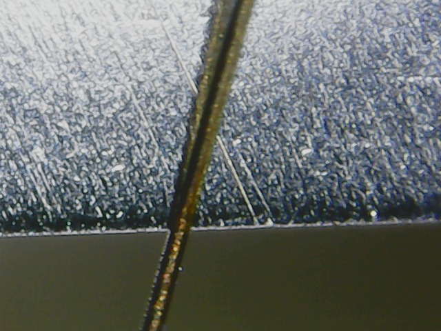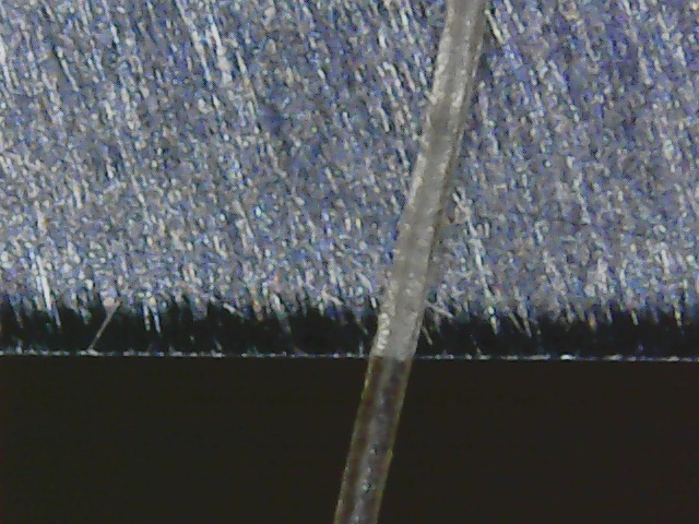 - Проявилась зона закалки. По цвету 295 гр.С. (стрелкой - зона закалки).