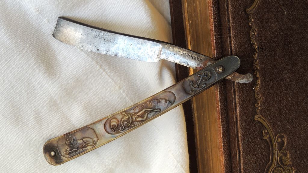 Фирма очень старая, по немногочисленной информации, годы существования - 1770-1795 (SHEPHERD, JOHN Sheffield Trademark: Crown and Wolf 1770-1795 ("More Old Razors" by Lummus. Antiques, May 1927 p.372-374); ("Old Sheffield Razors" by Lummus. Antiques, December 1922 p.261-267)). Что примечательно, порывшись в сети, я обнаружил, что производились даже бритвы по выточкам похожие на ложный фрэймбэк, это в конце XVIII-го века! Текста пока мало, вот картинки: Добавлено спустя 12 минут 3 секунды: Продолжение темы.