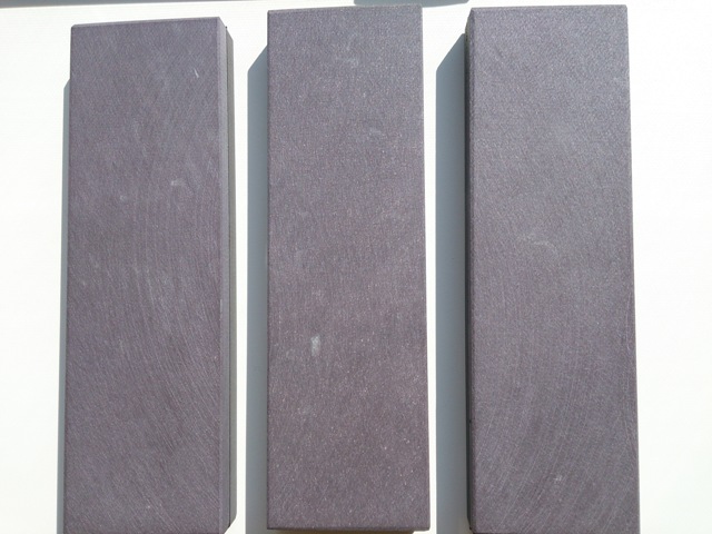 BBW (BELGIAN BLUE WHETSTONE) Природные камни из Бельгии, вид "гранатового" сланца, качество поверхности режущей кромки после BBW приравнивается к качеству поверхности после 4000 - 6000 синтетических камней. В "нагура" (кусочек такого же камня) для наведения суспензии и выравнивания поверхности камня в процессе заточки, размером 30х30х17 мм. Перед использованием поверхности камня и "нагуры" нужно доводить!