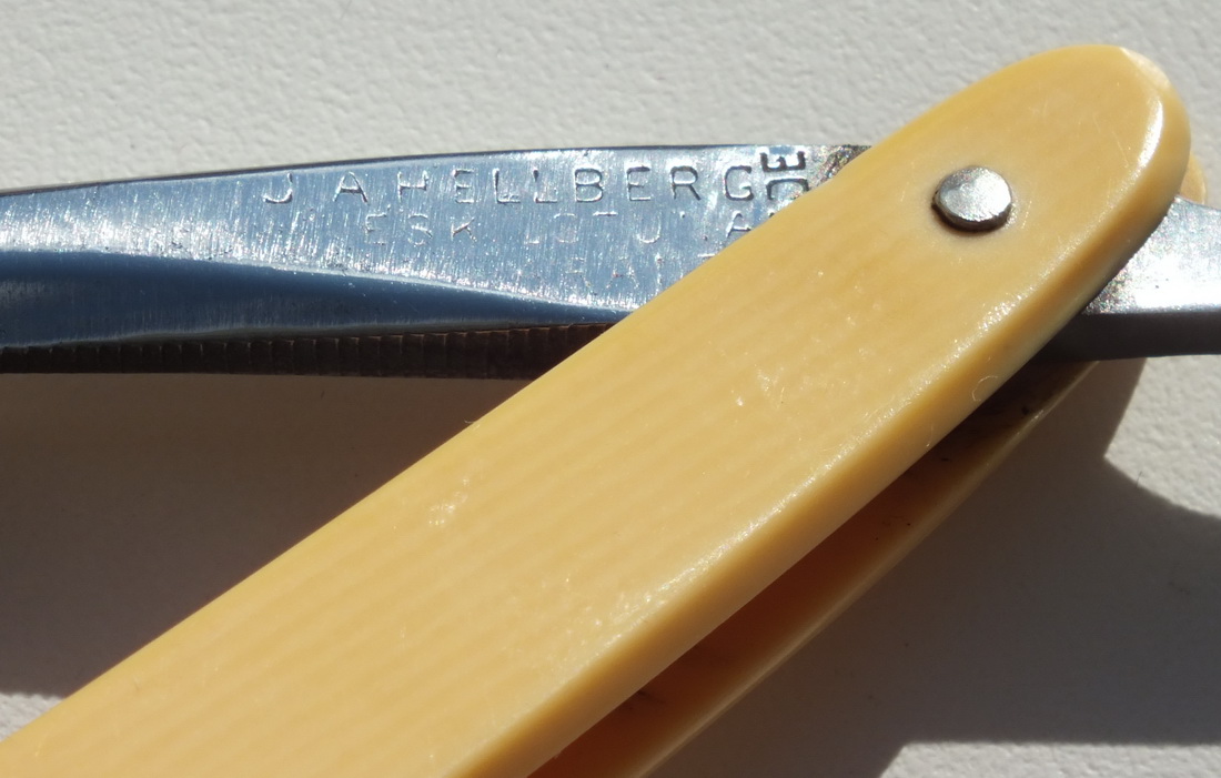 Швед J.A.Hellberg Eskilstuna. Состояние на фото. Оправа целлюлоид.Клинок 4/8 почти клин, размеры 134х14х5 мм.
