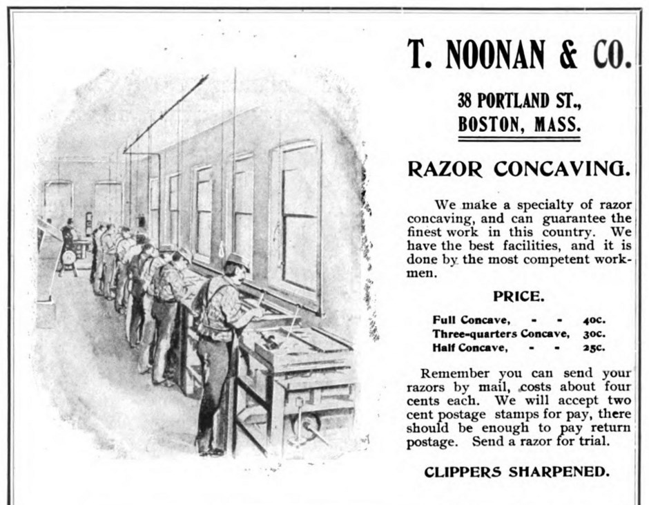 Любовь к вогнутости была такой, что можно было прислать в эту контору T. NOONAN & CO по почте свой клин и они за 40 центов превратили б его в hollow-ground. (об этом и сказано в рекламе)