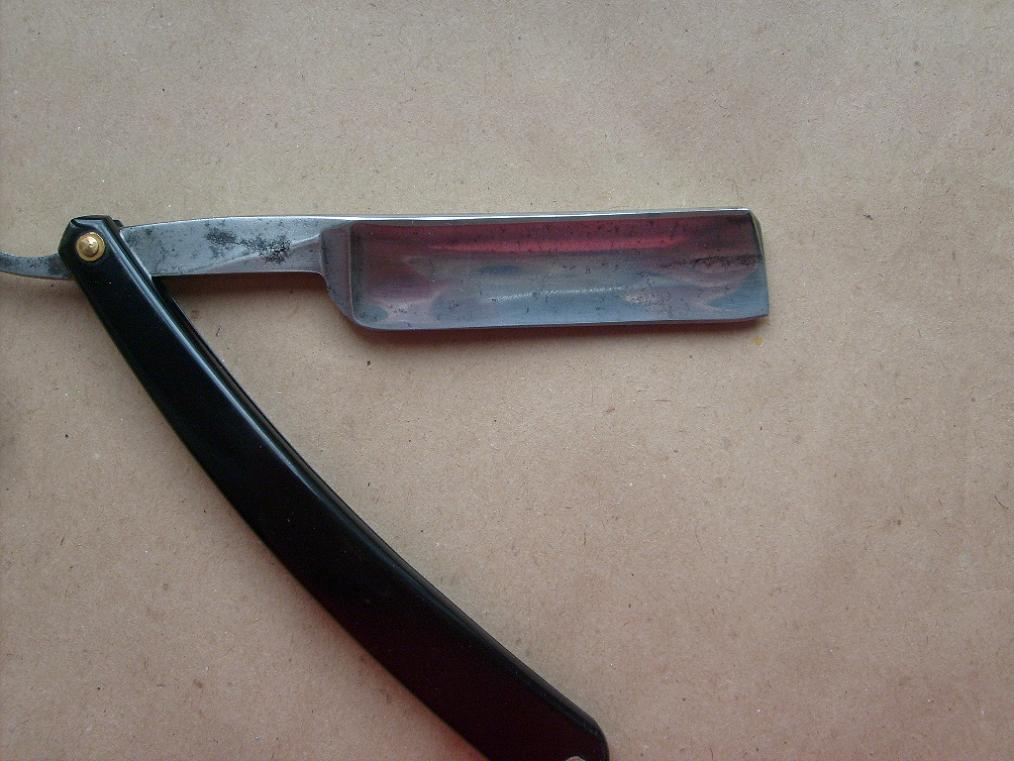 Шеффилдская всем хорошо известная фирма. Полотно: длина от заклёпки 12 см, ширина 19,5 мм. толщина обуха 6 мм. Полотно чистилось вручную шкурками и пастами, но не до конца (см. ниже). Тип углубления Quater hollow Ручка получилась брутальная из переделанной готовой оправы от Тьер-Иссарда, вставка между половинками тёмно-синий прозрачный пластик (проклеена эпоксидкой). Шайбы диаметром 4 мм. Заточена и готова к бритью. Внимание: бритва имеет следы до конца не выведенной коррозии (чёрный окисел). Удаление её последующим владельцем возможно, но приведёт к существенному снятию с полотна металла. Сложно делать прогнозы, но после нескольких сеансов бритья коррозия дальше не распространяется. Поэтому, несмотря на наличие фото, крайне желателен осмотр перед приобретением. Переслать в другой город я могу, но это тот случай, когда лучше видеть перед покупкой во избежание последующих претензий и мороки с возвратом.