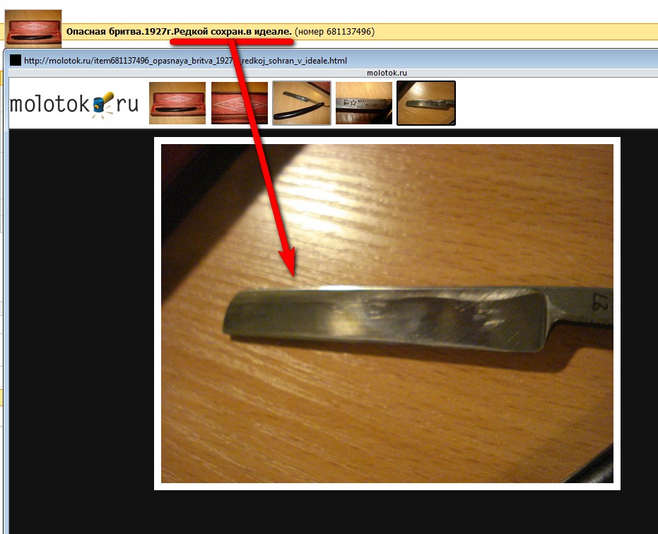 Re: Аукционы: плагиат, развод и "великолепные" описанияБРИТВА ОПАСНАЯ Solingen В ОТЛИЧНОМ КОЛЛЕКЦИОННОМ СОСТОЯНИИ ТРОФЕЙНАЯ ВЕЩЬ ПРЕКРАСНАЯ ОСТРАЯ БРИТВА ДЛЯ НАСТОЯЩИХ ЦЕНИТЕЛЕЙ И ЛЮБИТЕЛЕЙ СТАРИНЫ РЕДКИЙ ЭКЗЕМПЛЯР