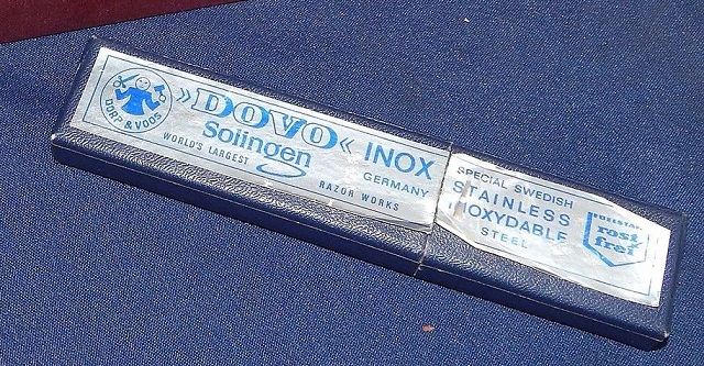 Вот с обратной стороны эти бритвы - та же надпись про качество: А вот дововская коробочка правая часть коробочки один в один с правой частью коробочки от доктора: (вернее наклейка на коробочку одинаковая) Ну, и целлофановые пакетики один в один: Воооот, все эти мелочи в совокупности говорят о том, что Доктор - DOVO. Ну и буква "g", конечно дововсквая. http://www.dovo.com/" onclick="window.open(this.href);return false; Добавлено спустя 14 минут 32 секунды: PS в видео от 2010 года, как на фабрике DOVO бритвы делают мелькает одна из этих бритв так что, скорее всего, доктор тоже свежак. Re: Dr. BalfanzВполне себе версия.