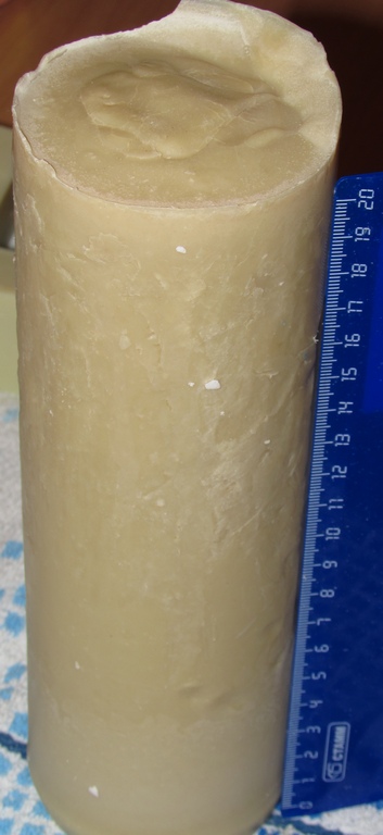 4. Уход мыла в гель (при достаточной температуре) и схватывание в "комок" (похоже на силикон для сантехники) При недостатке воды (20-22% - уход в твердую фазу)