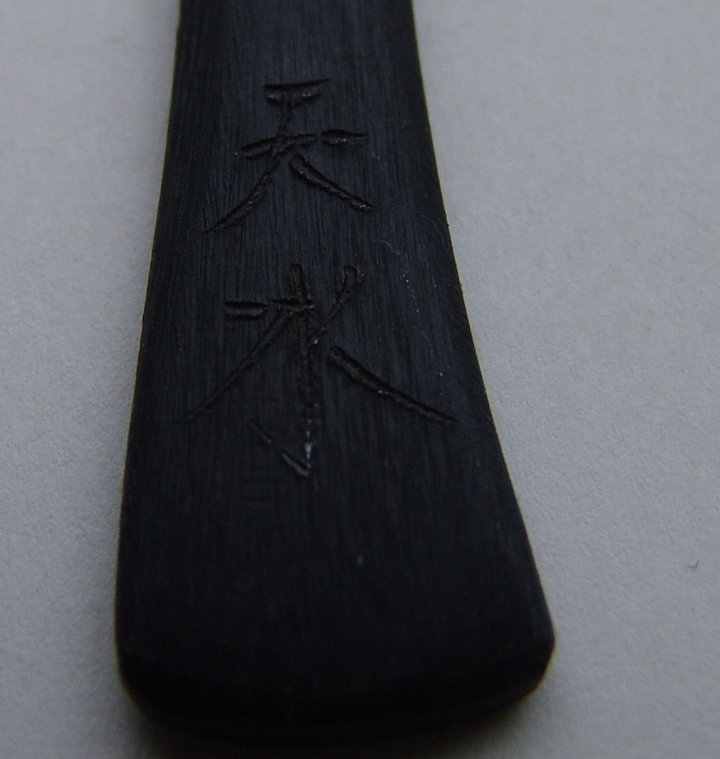2.山正- Ямамаса- (фамилия мастера). Вот тут любопытно, что на клейме иероглиф 山-Яма- "гора", заменён рисунком гор. Выглядит как наша "М" ))
