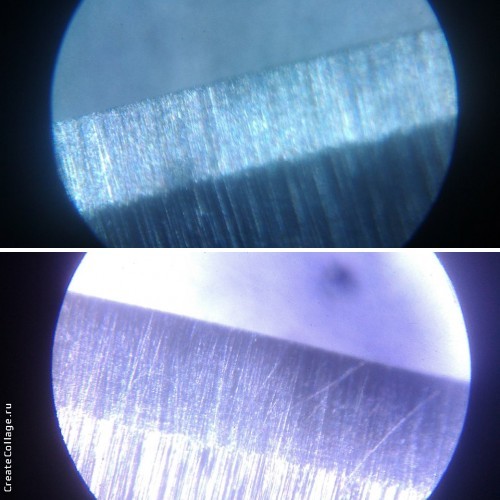 И так четыре раза. Результат - царапины на боках бритвы.