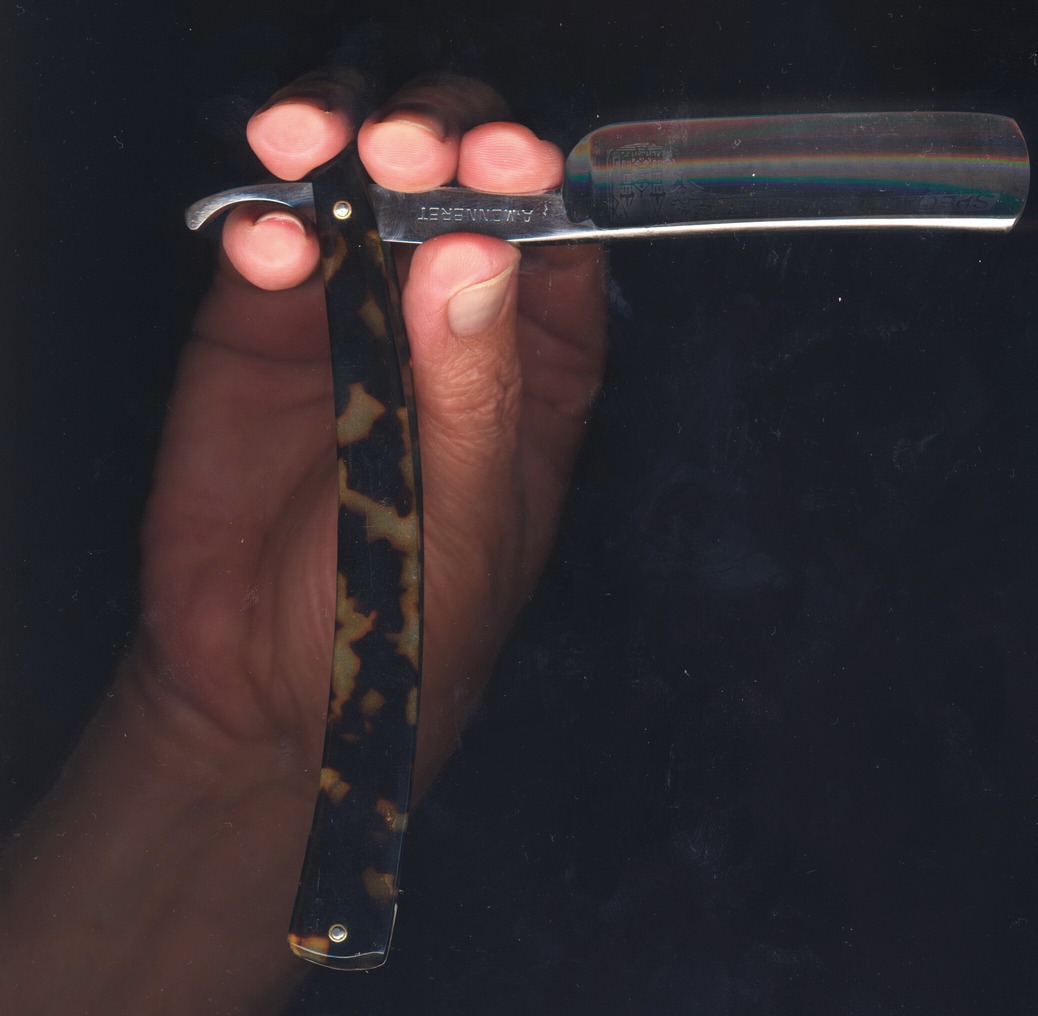 Одна тонкость, впрочем, есть. Мне пришло в голову это только сейчас. Это хваты для моих, относительно небольших пальцев, которые позволяют мне держать бритву так. Я допускаю, что люди с длинными, толстыми пальцами при одной попытке взять бритву таким образом, ОСНОВАТЕЛЬНО их порежут.