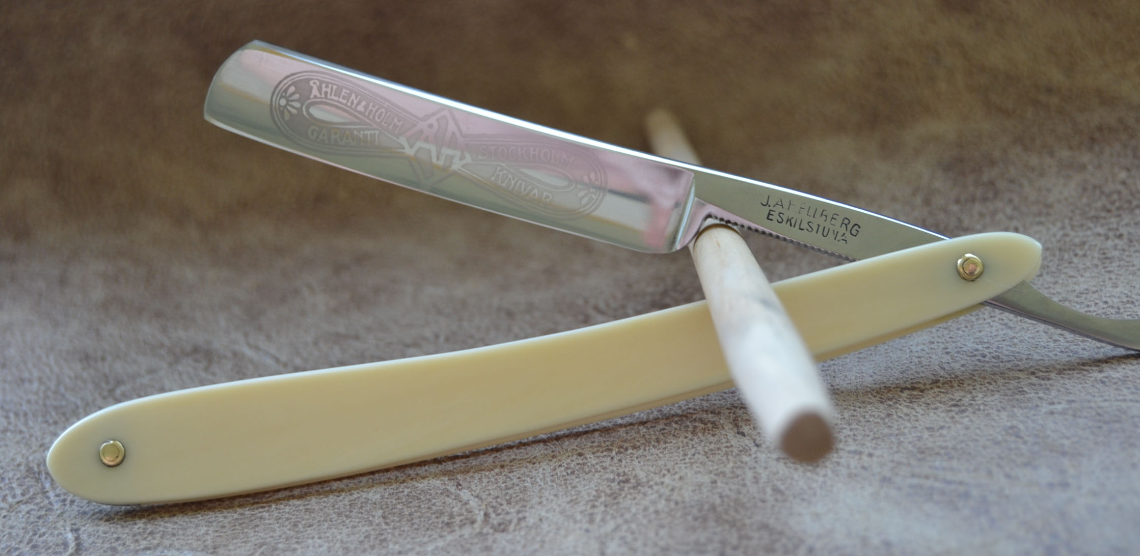 Швеция. Старая неиспользованная бритва. 4/8 По вогнутости близка к клину.Заточена на камнях без изоленты. Рукоять из слоновой кости. довольно распространенная модель, но травление говорит о том, что эта серия бритв была предназначена для компании Åhlén & Holm. Уж не знаю для каких целей им понадобились бритвы =) История компании Spoiler Show https://www.ahlens.se/om-oss/historia/" onclick="window.open(this.href);return false; продано Spoiler Show