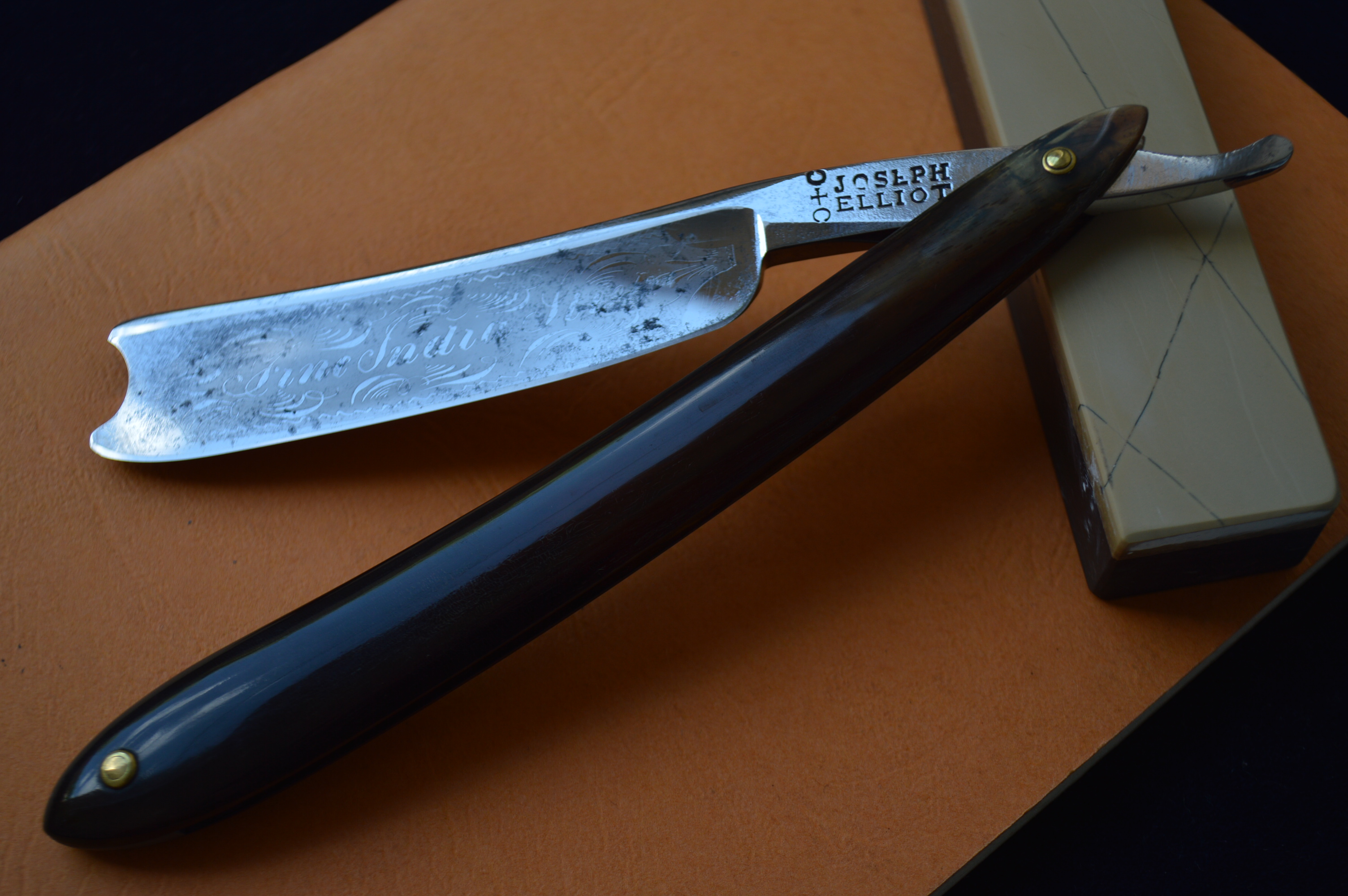Re: Joseph Elliot's, SheffieldRe: Joseph Elliot's, SheffieldВ копилку. Досталась мне почти за даром, состояние печальное. Очистил наточил, будет возможность поменяю ручку. На лезвии надпись но немогу пока разобрать, не все буквы видно. Подскажите примерный возраст. Сталь отменная, броет очень мягко. Обушек не толстый, ширина около 14 мм. Нелюблю массивные бритвы, с крупными ручками, это очень изящная.