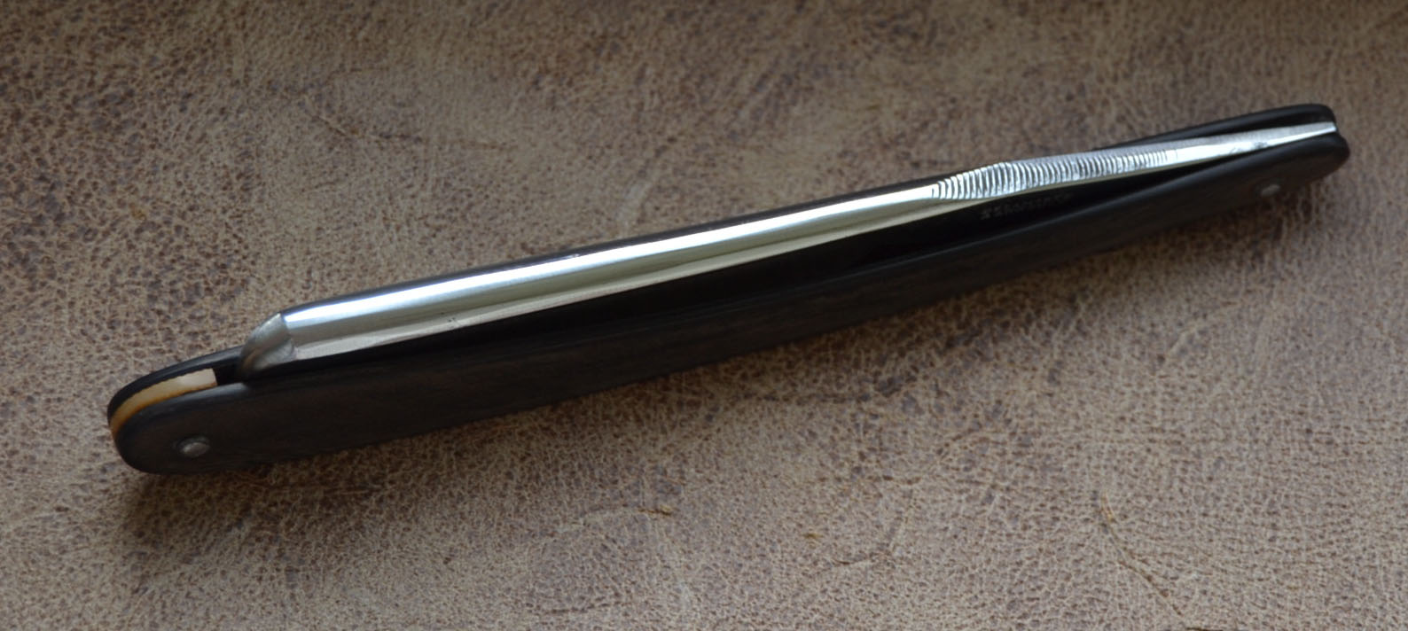 Artaud & Martin a Bourbonne По моему мнению бритву можно датировать серединой 19 века. Продукт небольшого предприятия, расположенного в провинции Бурбонне в центре Франции. Бритва непользованная, заточена мной впервые. Достойный продукт старой Франции. Продано Spoiler Show