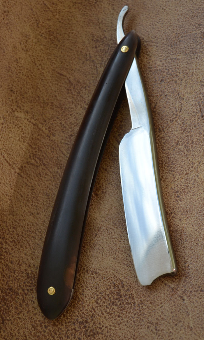 Старая Франция, предположительно начало XIX века. Массивный клин 7/8, рукоять рог, клинышек кость. При разборке обнаружилось еще одно скрытое клеймо. Отличная бритва в лучших традициях старой Франции. Продано Spoiler Show