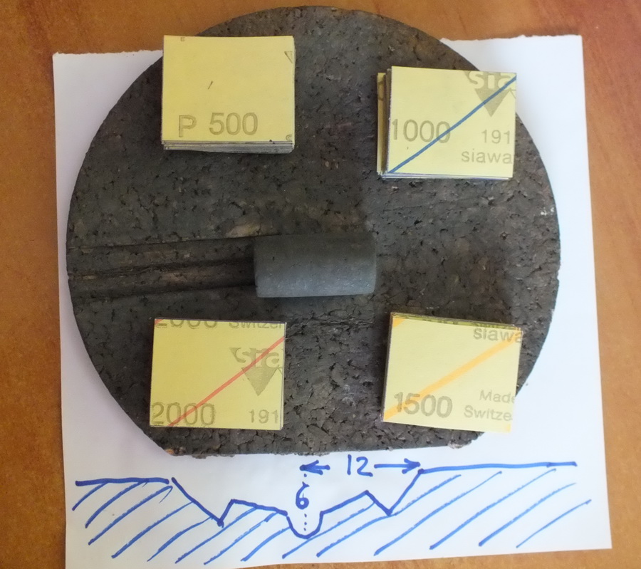 Тоже в основном использую наждачку SIA, а также Smirdex (P2000-3000). Правда градацию использую немного другую: P180, P240, P400, P600, P800, P1000, P2000, P2500, P3000. На сухую по моим наблюдениям съем металла идет побольше все таки. Круговые и продольные движения стараюсь не использовать, потом царапки остаются, которые ничем не выводятся.