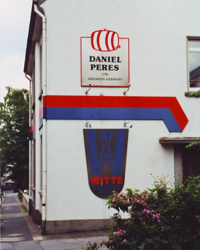 Re: Daniel Peres GmbH & CoSolingen's first water-powered pocket-knife factory was built in the Weinsberger valley in 1801 for Peter Daniel Peres, a merchant who had started a cutlery business in 1792, aged 16. He exploited a gap in the market and made "fine pen knives" using the superior crucible steel from Sheffield. (It would be anotherhalf century before Krupps started to produce significant quantities of crucible steel).