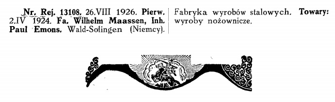 Wilhelm Maassen, Inh. Paul Emons. Основано в 1900. Solingen-Wald, Altenhofer Strasse 20 в 1922 и 1939.