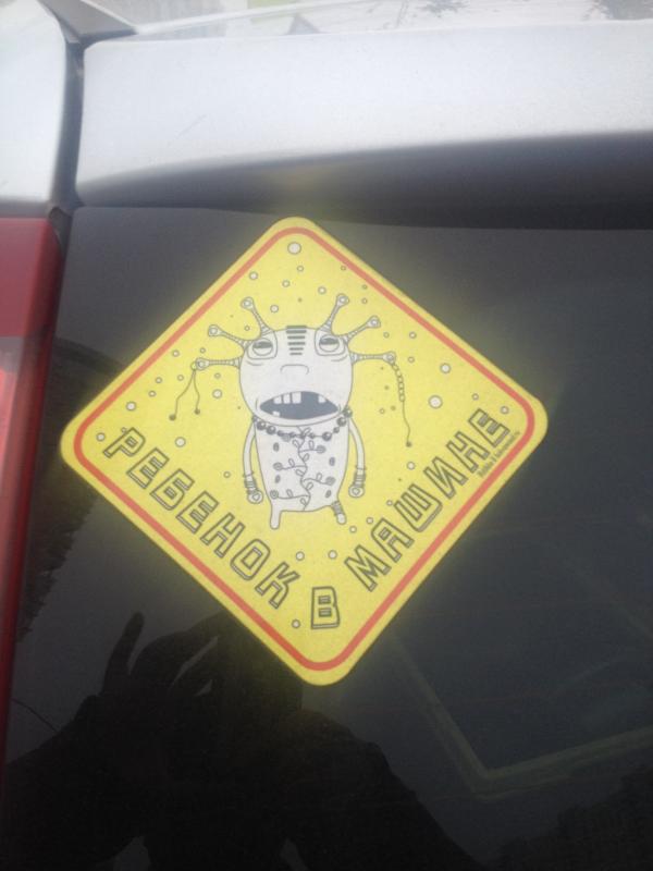 Re: Наши фото. Просто фото сделанные нами.По дороге на работу встретилась такая наклеечка на машине. Чуть-чуть приподняла настроение. Родители - панки, судя по всему.