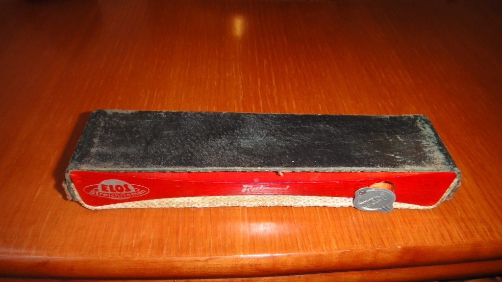 Всё-равно ТIТАN - гавно! Re: Фотографии средств для заточки опасных бритвStreichriemen Rekord Elos кожа свиная. В комментарии было сказано : Alter Friseur Frisör Barbier Streichriemen Rekord Elos 1918-1945. По производителю информации не нашел.