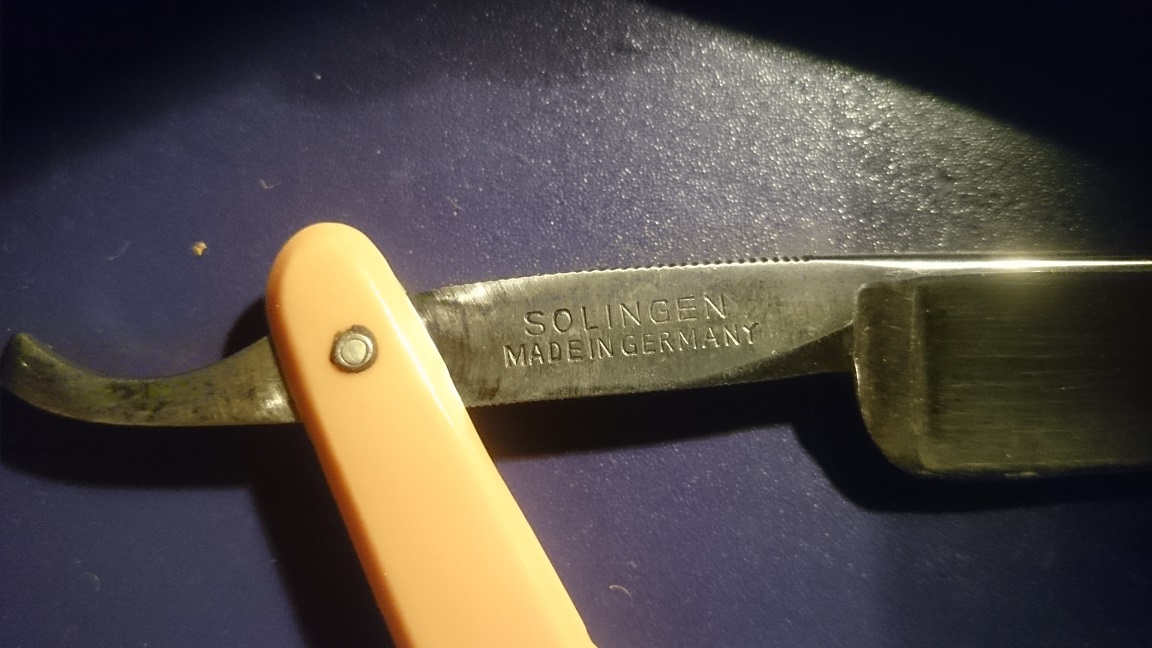 Разбирался в квартире у бабушки, нашел опасную бритву. По виду немецкая, Solingen. Посмотрел в интернете, никакой информации по данному клейму не нашёл. Очень интересно узнать ее происхождение, год и имеет ли она какую-либо ценность. Заранее спасибо за Ваши ответы!