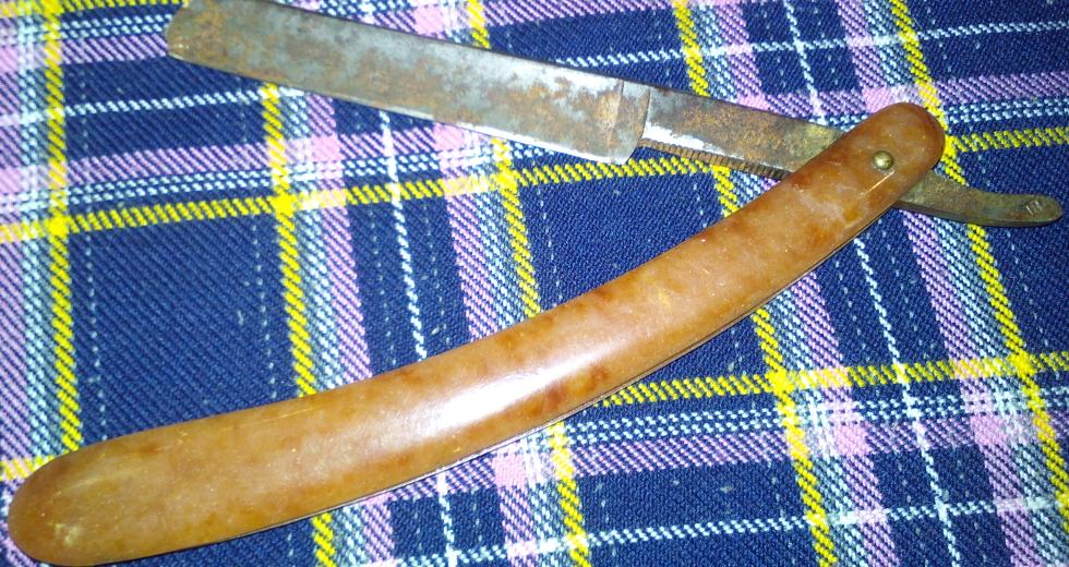 Volgar писал(а):Принес знакомый почти новую оправу с заржавевшим клинком опасной бритвы, уточенным и с улыбкой. Долго думал, выкинуть или нет. Решил попробовать, что получитЬся.