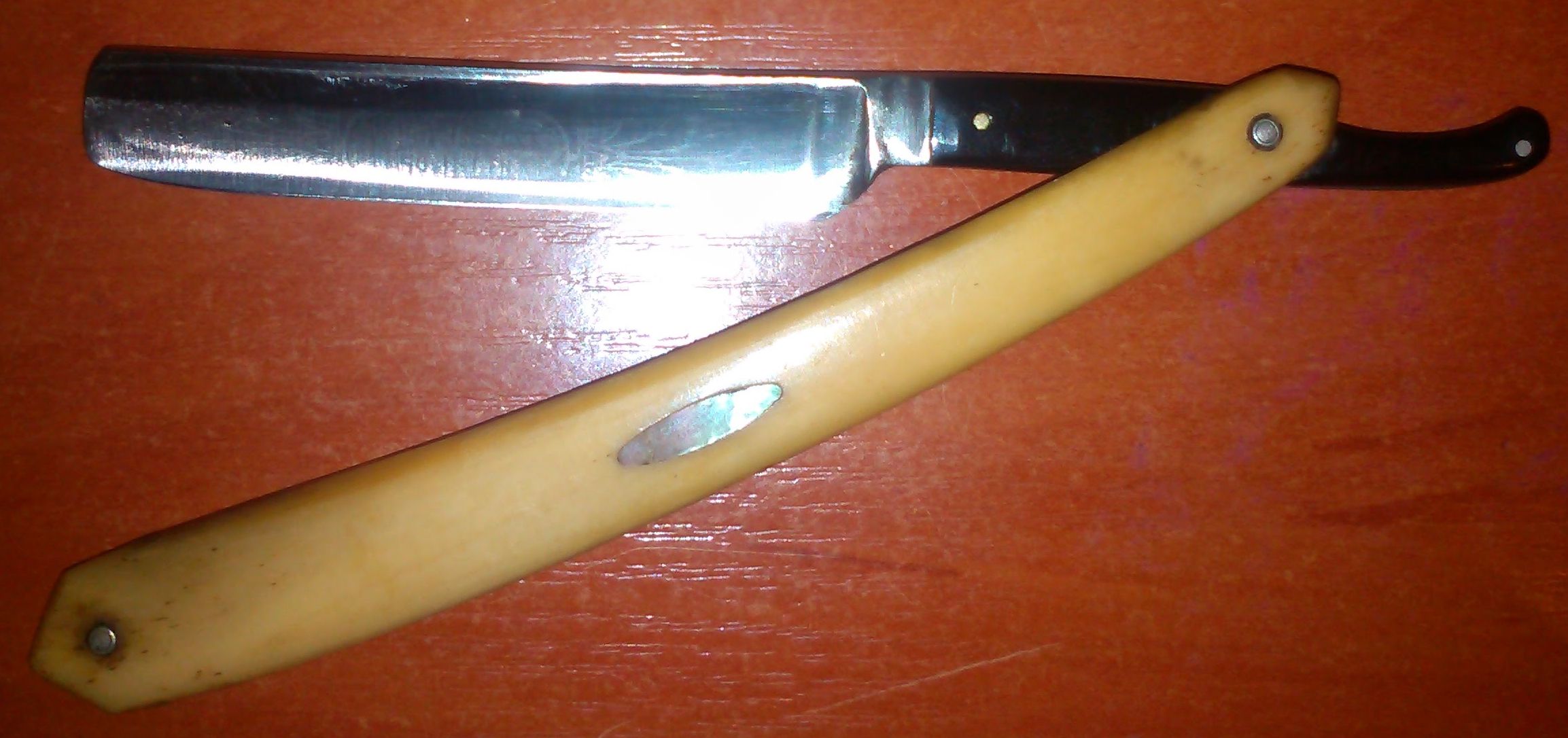 Re: Помогите, пожалуйста, определить бритвуНемного разобрался, такое исполнение называется "covered tang" (покрытый хвост). Многие производители делали подобные модели бритв, часто клеймо ставилось краской прямо на покрытие хвостовика, которое могло быть из целлулоида, пластика, перламутра и т.д. К сожалению определить производителя по хвостовику не получится, значит бритва "noname".