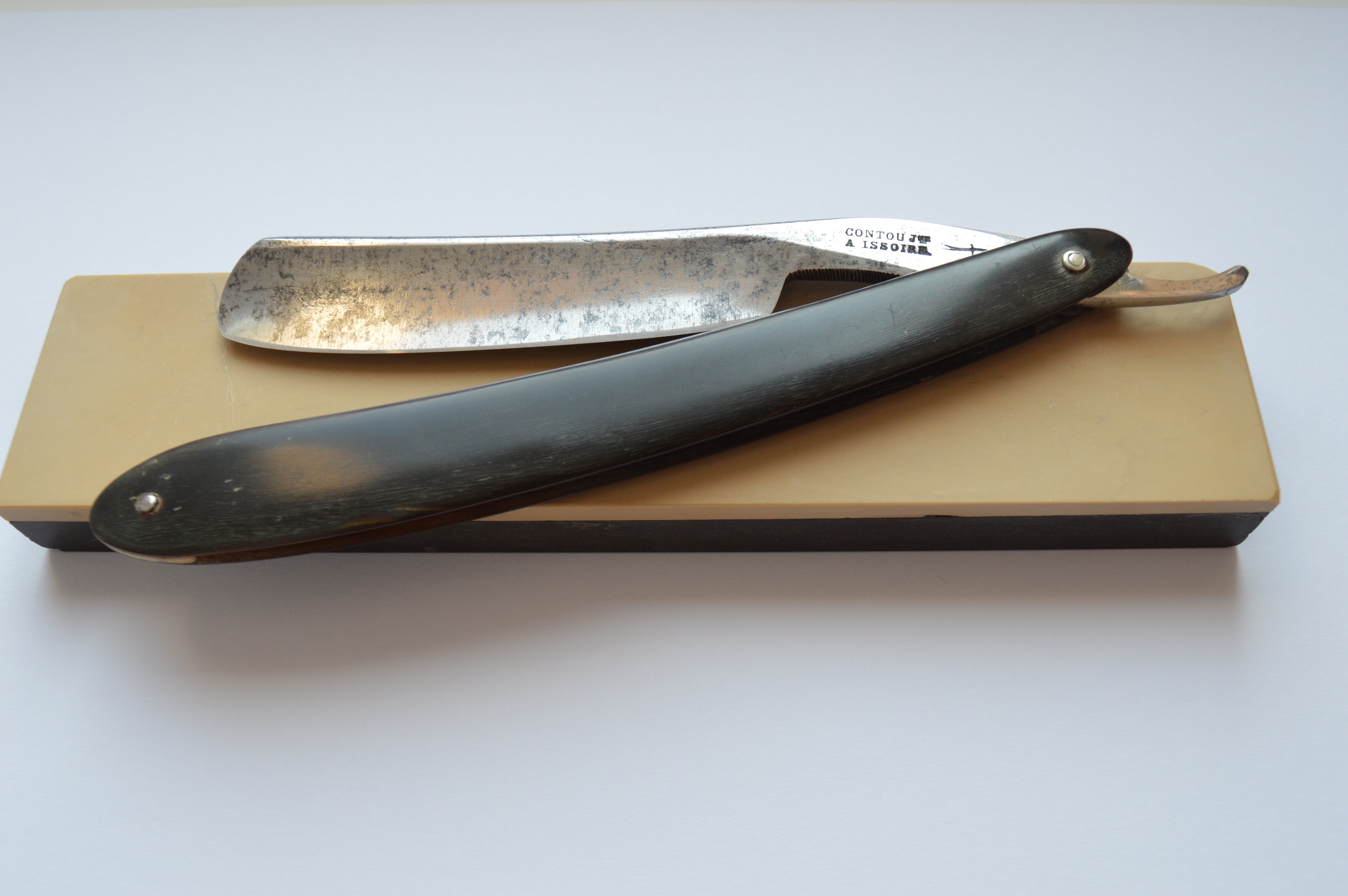 По бритве Gontou à Issoire (так как я ее купил и жду с нетерпением Пишут примерно следующее: Скорее всего произведена во Франции в первой половине 19 в. скорее всего в г. Иссуар в регионе который называется Thernois (Тьернуа). В этот регион входит и знаменитый город Тьер. "Саблю" определили как торговую марку Riberon зарегистрированную в 1745 г. неким испанским ножевиком Жаном Рибероном. Аналогичная марка использовалась одновременно и во Франции и в Испании. Re: Contou, IssoireНе уверен, так что в порядке обсуждения: